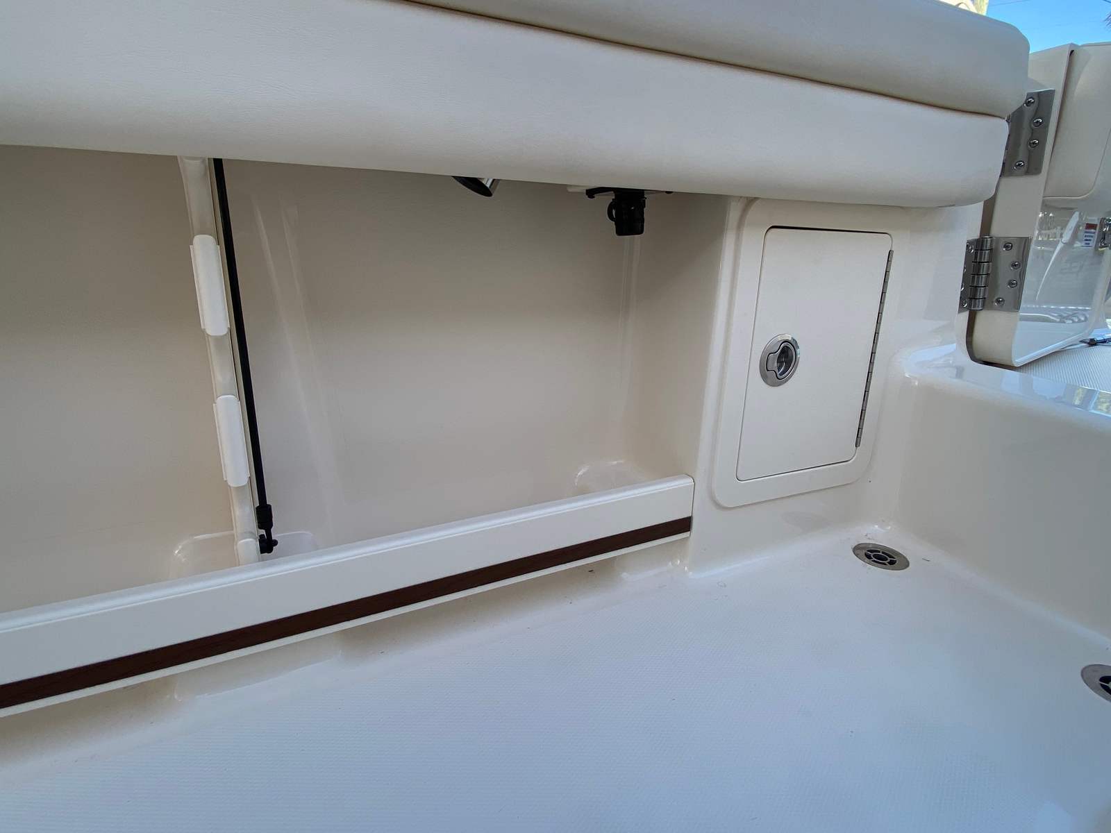 The Fisherman 236 shines in a variety of scenarios, making it a versatile choice for any boating enthusiast. For families, the spacious deck and comfortable seating create the perfect setting for weekend outings, picnics, and water sports. Anglers will appreciate the deluxe lean bar, livewell, and casting platform, which make fishing trips more productive and enjoyable. The bow fiberglass table is ideal for hosting friends, sharing meals, or celebrating special occasions on the water.Luxury seekers will love the stylish Sage Gray gel coat and silver logos, which set this Grady-White boat apart from the crowd. The anchor windlass with bow roller and windshield wiper add convenience and safety, making every journey smooth and worry-free. Whether you’re exploring new fishing spots, cruising along the coast, or relaxing at anchor, the Fisherman 236 delivers the perfect blend of performance, comfort, and style.