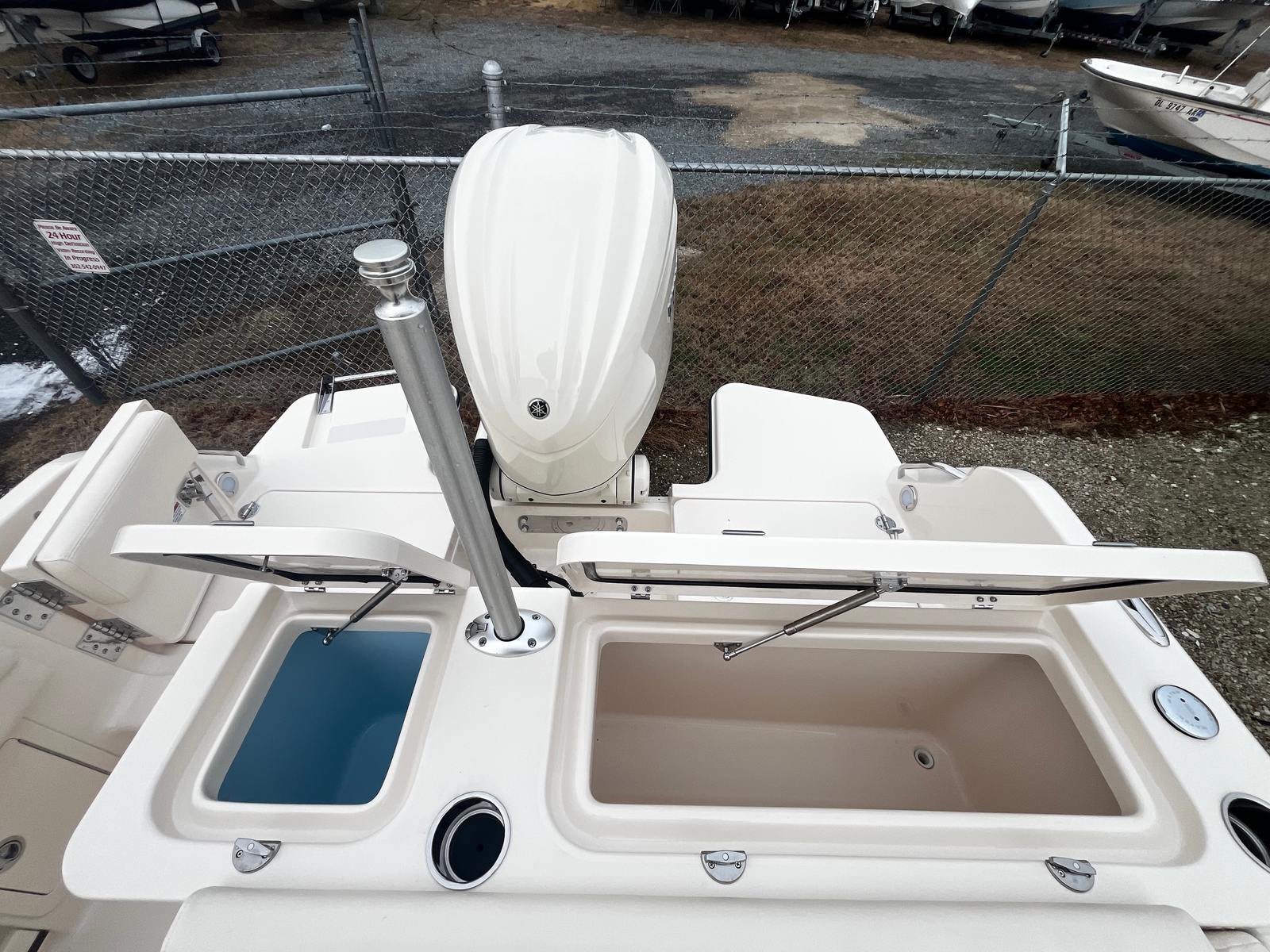 • Deluxe Lean Bar w/ Raw Water Livewell – Expanded tackle storage, added comfort, and a high-capacity livewell for serious anglers.