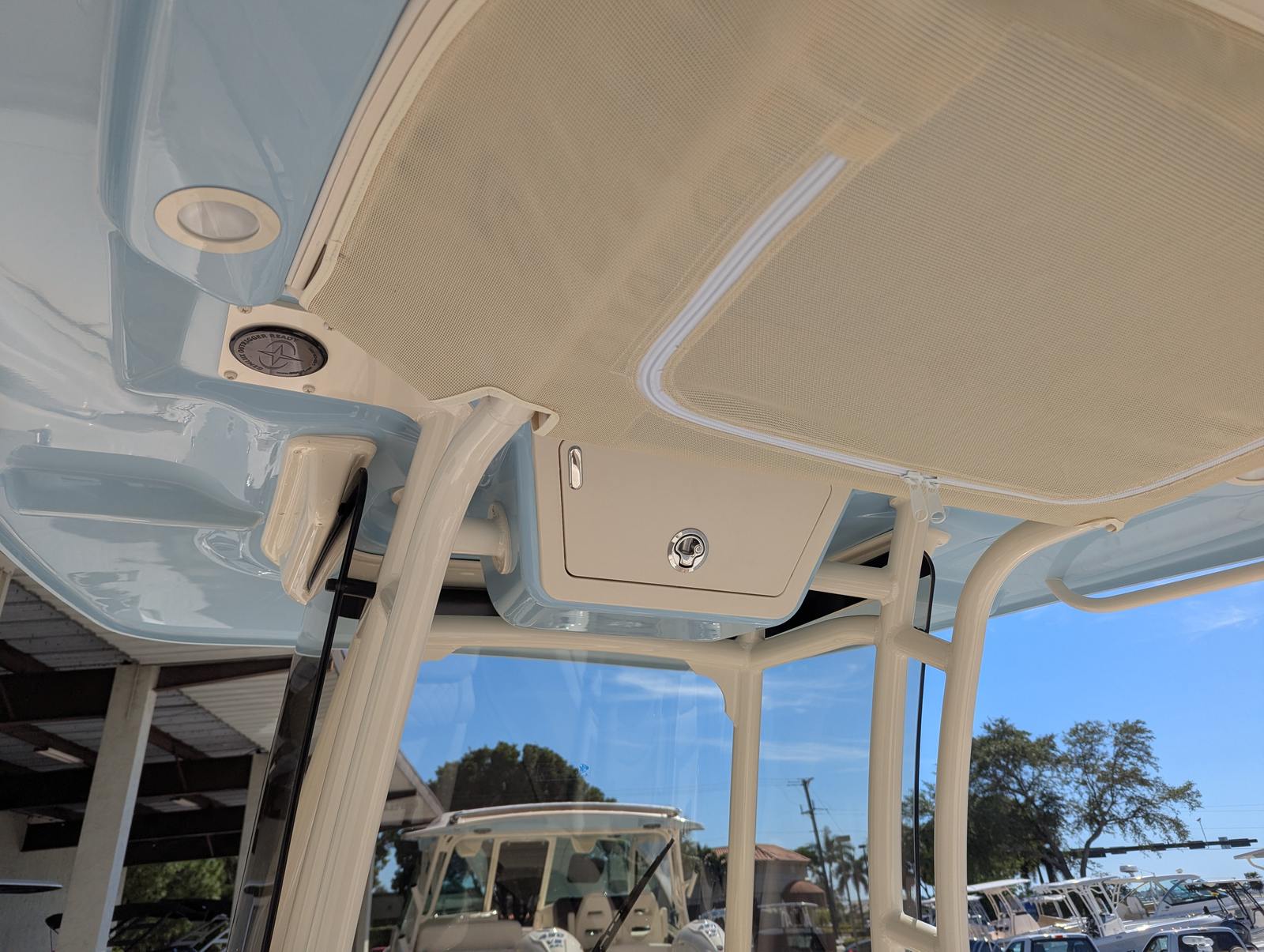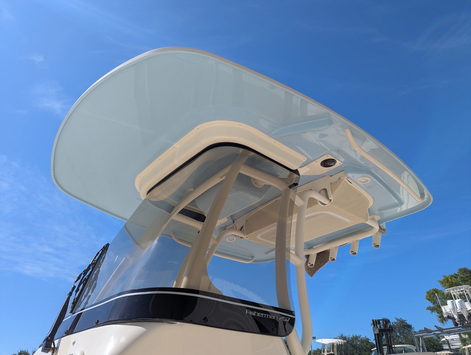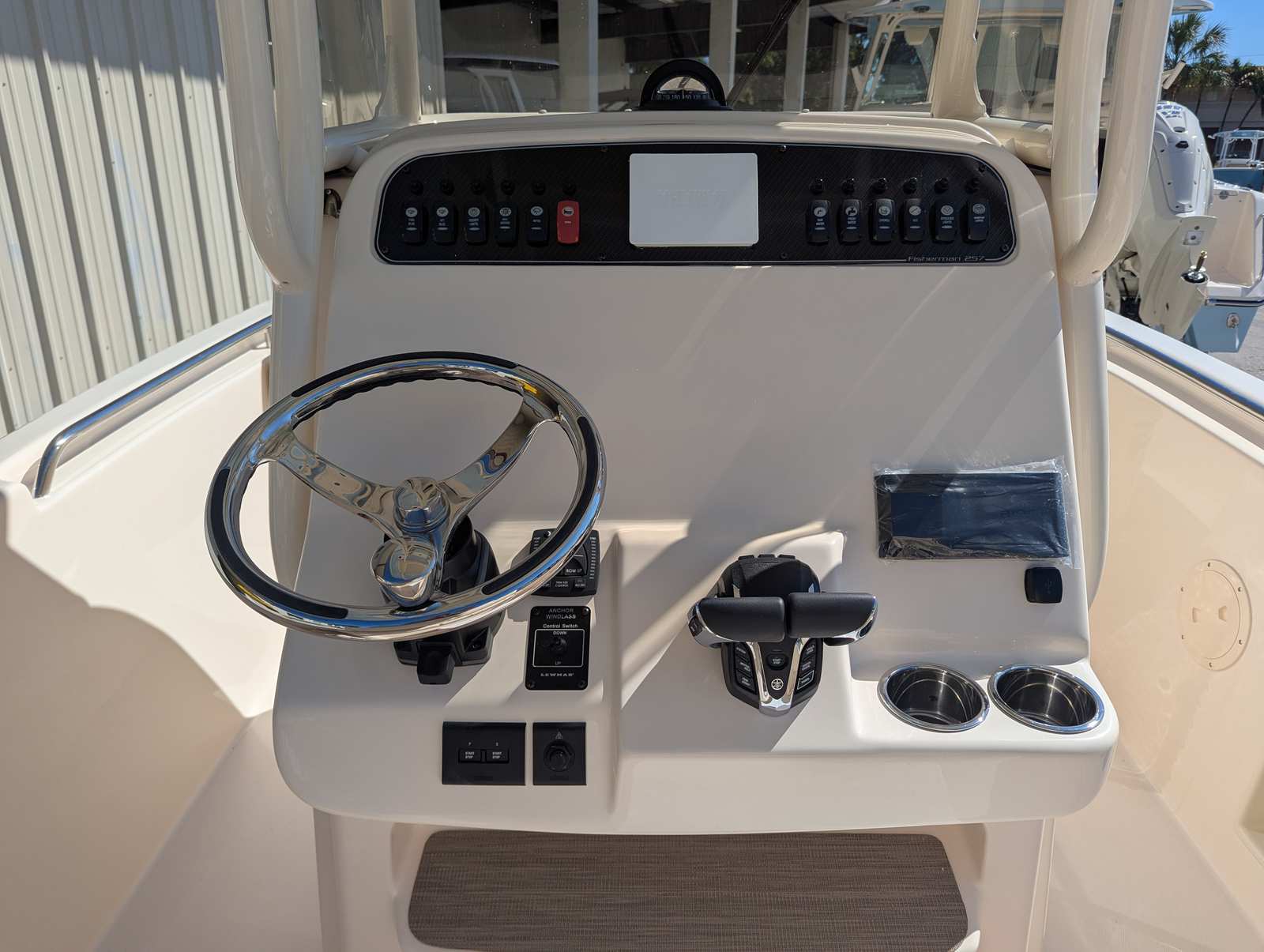The Grady-White Fisherman 257 is packed with special features that enhance both functionality and comfort. The cockpit step on the port side provides easy access to and from the boat, making boarding and disembarking a breeze. A Yeti cooler is included, ensuring your refreshments stay cold and your catch remains fresh throughout the day. The whole gel coat in Celestial Blue, along with the Jit Top underside in the same striking hue, adds a touch of elegance and sophistication to the boat’s overall look. These features not only elevate the aesthetic appeal but also contribute to a more enjoyable and convenient boating experience.
