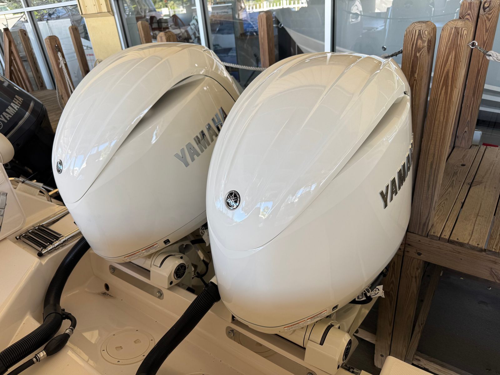 This center console boat for sale is as practical as it is stylish. The Fisherman 257’s manageable length of 24.75 feet makes it easy to dock, trailer, and store, giving you flexibility and convenience. The efficient Yamaha F200 engines are designed for optimal fuel economy, helping you spend more time on the water and less at the pump. The head macerator adds a level of comfort that is especially appreciated during longer trips, while the durable gel coat ensures your boat maintains its stunning appearance season after season. Whether you are navigating tight marinas or exploring open waters, the Fisherman 257 offers the versatility and ease of use that today’s boaters demand.