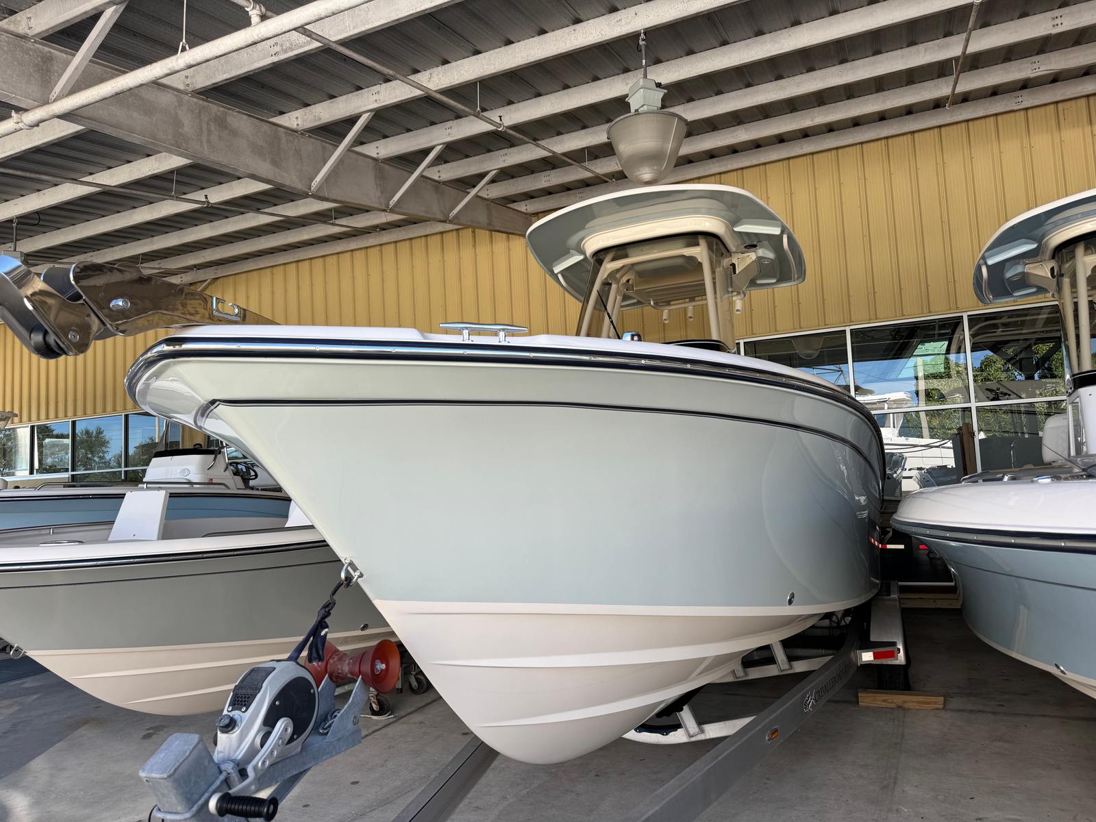 The 2026 Grady-White Fisherman 257 is a center console boat measuring 24.75 feet in length, making it an ideal size for a variety of activities, from offshore fishing to leisurely cruises. As a new model, it boasts the latest advancements in marine technology and design, ensuring you enjoy every moment on the water. The sleek lines and modern profile of this center console boat for sale are complemented by its Sage Gray gel coat and matching Jit Top underside, giving it a distinctive and sophisticated look that turns heads at every marina.