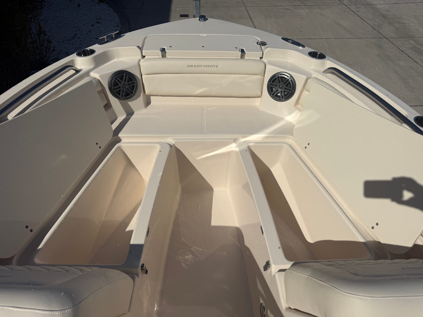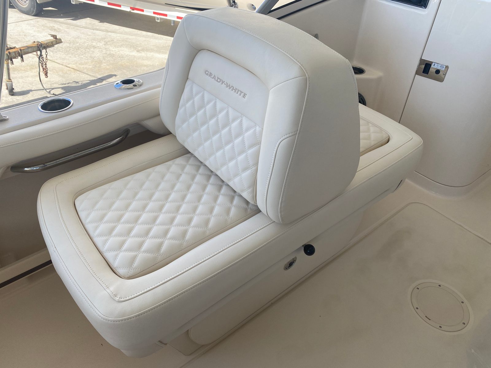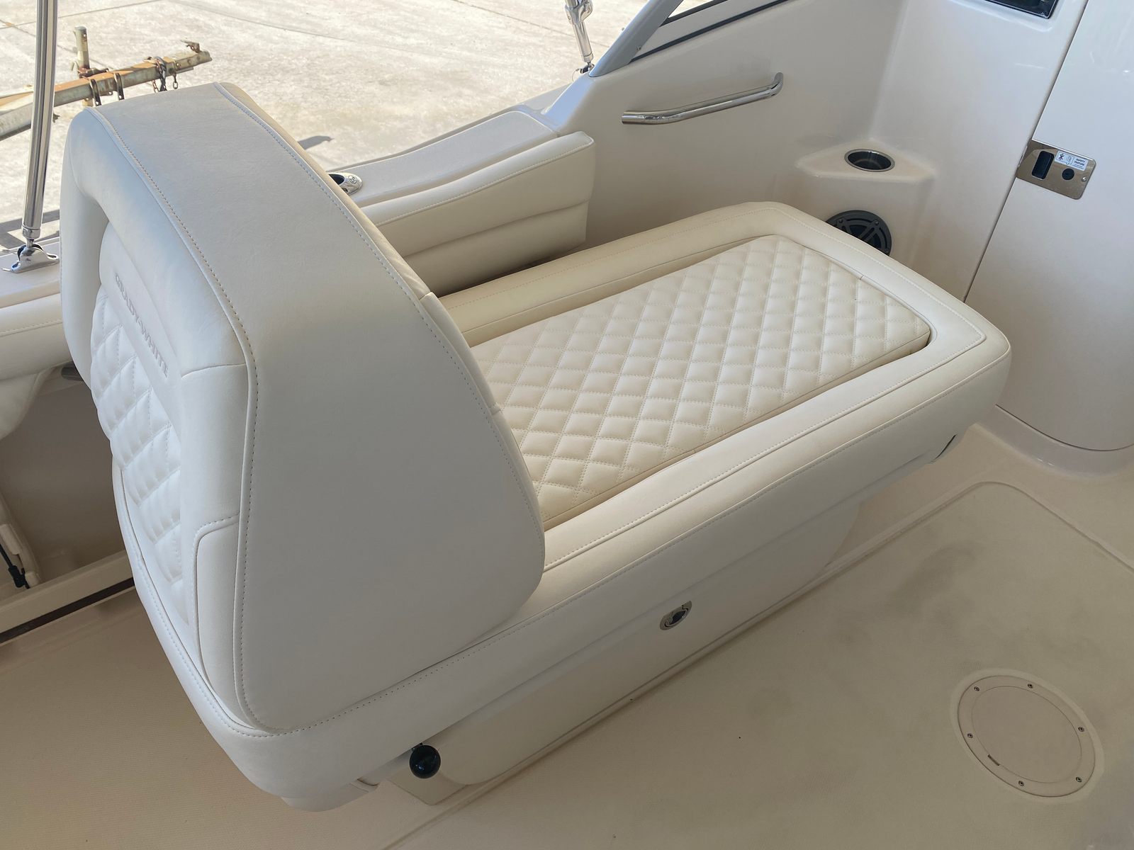 The Grady-White Freedom 215 is loaded with special features that enhance comfort, convenience, and enjoyment on the water. The install Silve Logos add a touch of elegance and brand distinction, while the lounge seat on the port side with a sliding back offers versatile seating arrangements for relaxation or socializing. The cockpit shower provides a refreshing rinse after a swim or a day in the sun, and the sun platform insert with cushion creates a spacious area for sunbathing or lounging.For anglers, the raw water livewell is a valuable addition, keeping bait fresh and ready for action. The raw water wash down makes cleaning up after a successful fishing trip quick and easy. The black aft tonneau cover offers protection for your boat’s interior when not in use, preserving its pristine condition. Every detail, from the gel coat to the seating, is designed with both aesthetics and functionality in mind, ensuring a premium boating experience.