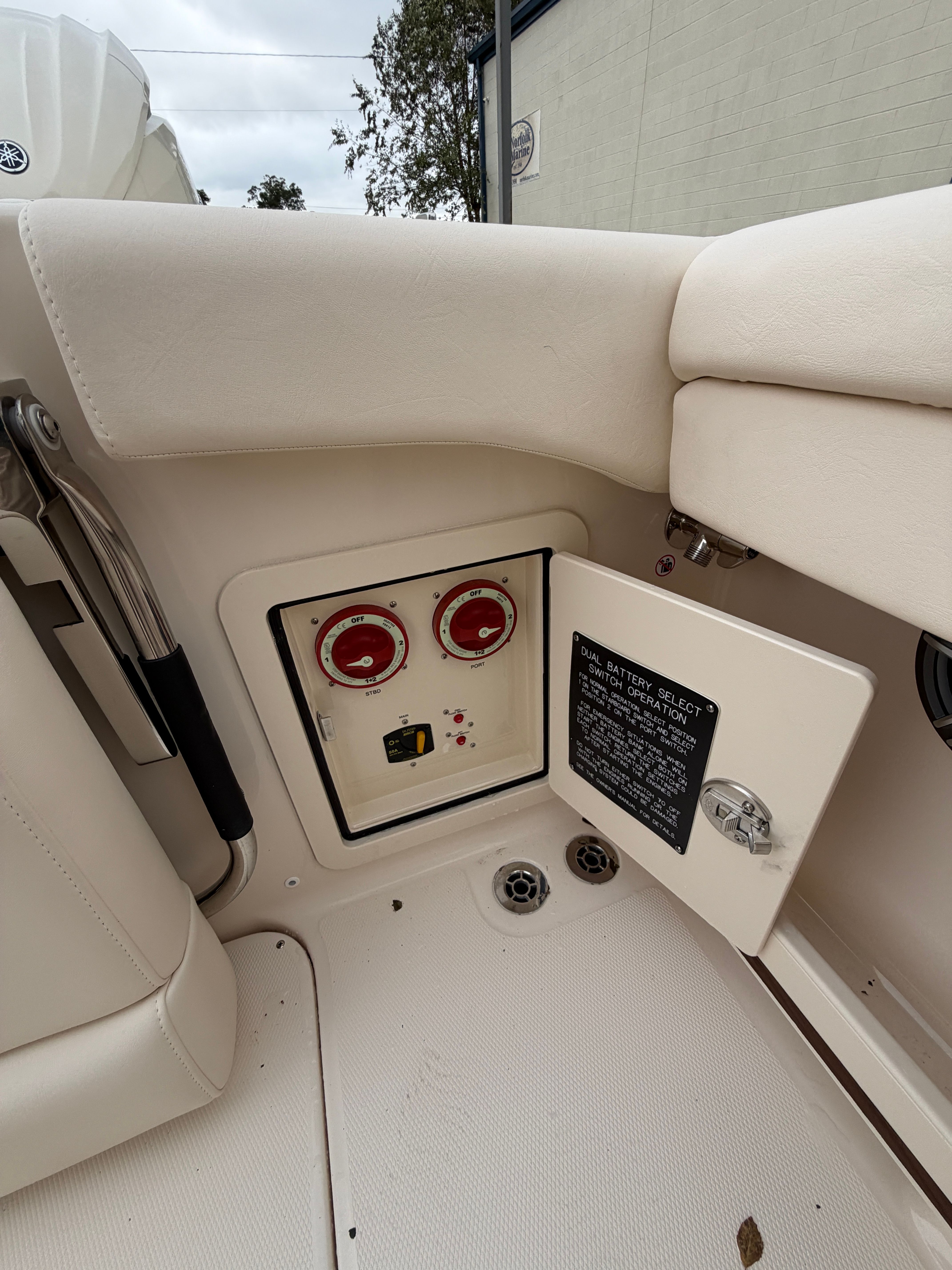 Owning the Grady-White Freedom 255 means embracing a lifestyle of fun, relaxation, and adventure. The spacious Dual Console layout offers flexible seating and lounging areas, perfect for socializing with family and friends. The plush upholstery and ergonomic design ensure everyone stays comfortable, whether you’re cruising, fishing, or soaking up the sun. The advanced Yamaha engines provide peace of mind with their reliability and fuel efficiency, allowing you to spend more time on the water and less time at the pump. The stylish Sage Gray hull and matching top create a striking visual impression, making every outing feel special.