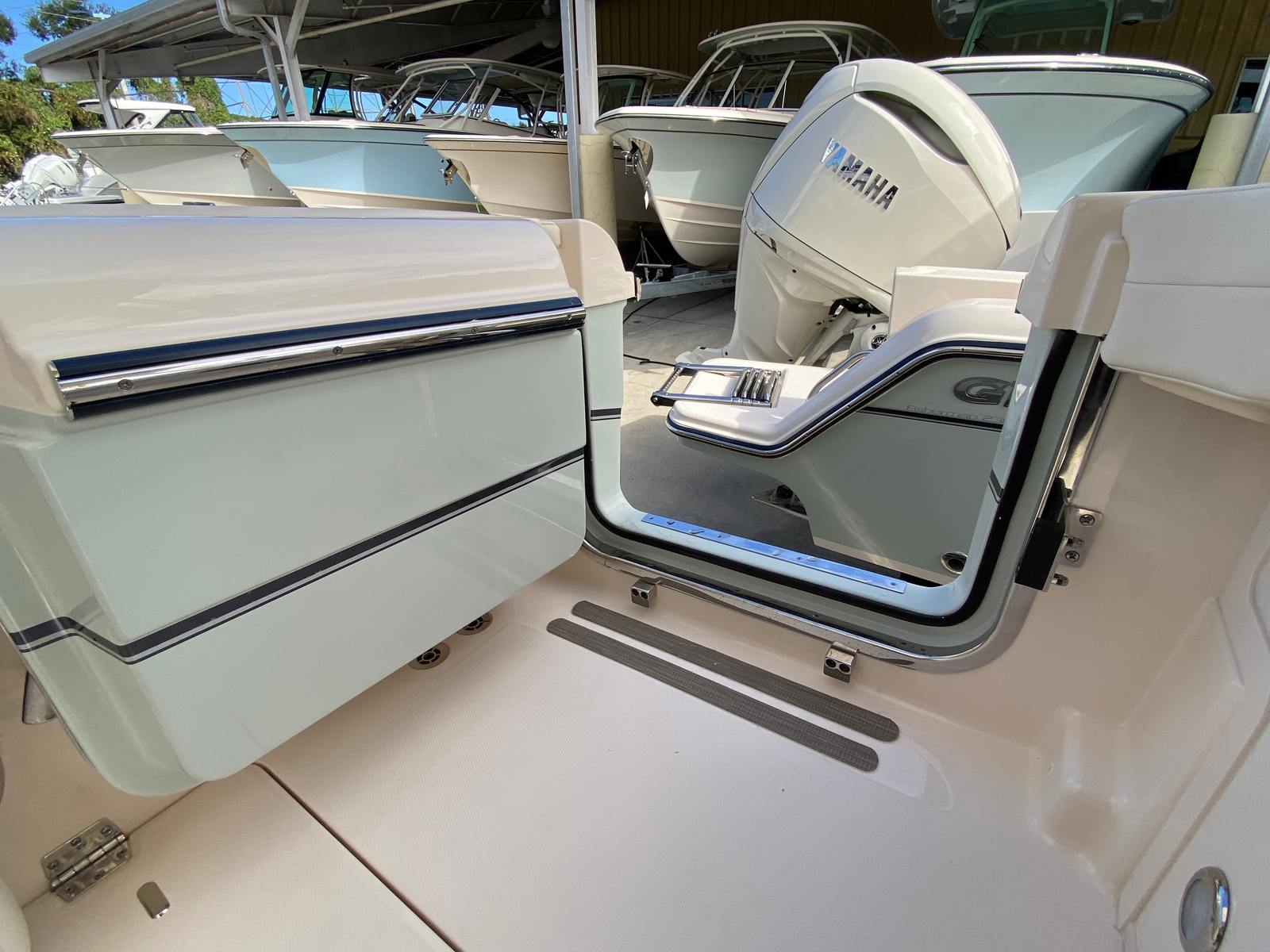 At the heart of the Grady-White Freedom 285 are twin Yamaha F300XSB engines, delivering a combined 600 horsepower for exhilarating performance and reliable power. These advanced outboards are renowned for their efficiency, quiet operation, and impressive acceleration, ensuring you can reach your favorite destinations quickly and comfortably. The PreRig Dual Yamaha F300XSB setup ensures seamless integration and optimal performance, giving you confidence in any conditions. Whether you are cruising at a leisurely pace or powering through open water, the Freedom 285 offers a responsive and enjoyable ride that sets it apart from other dual console boats for sale.