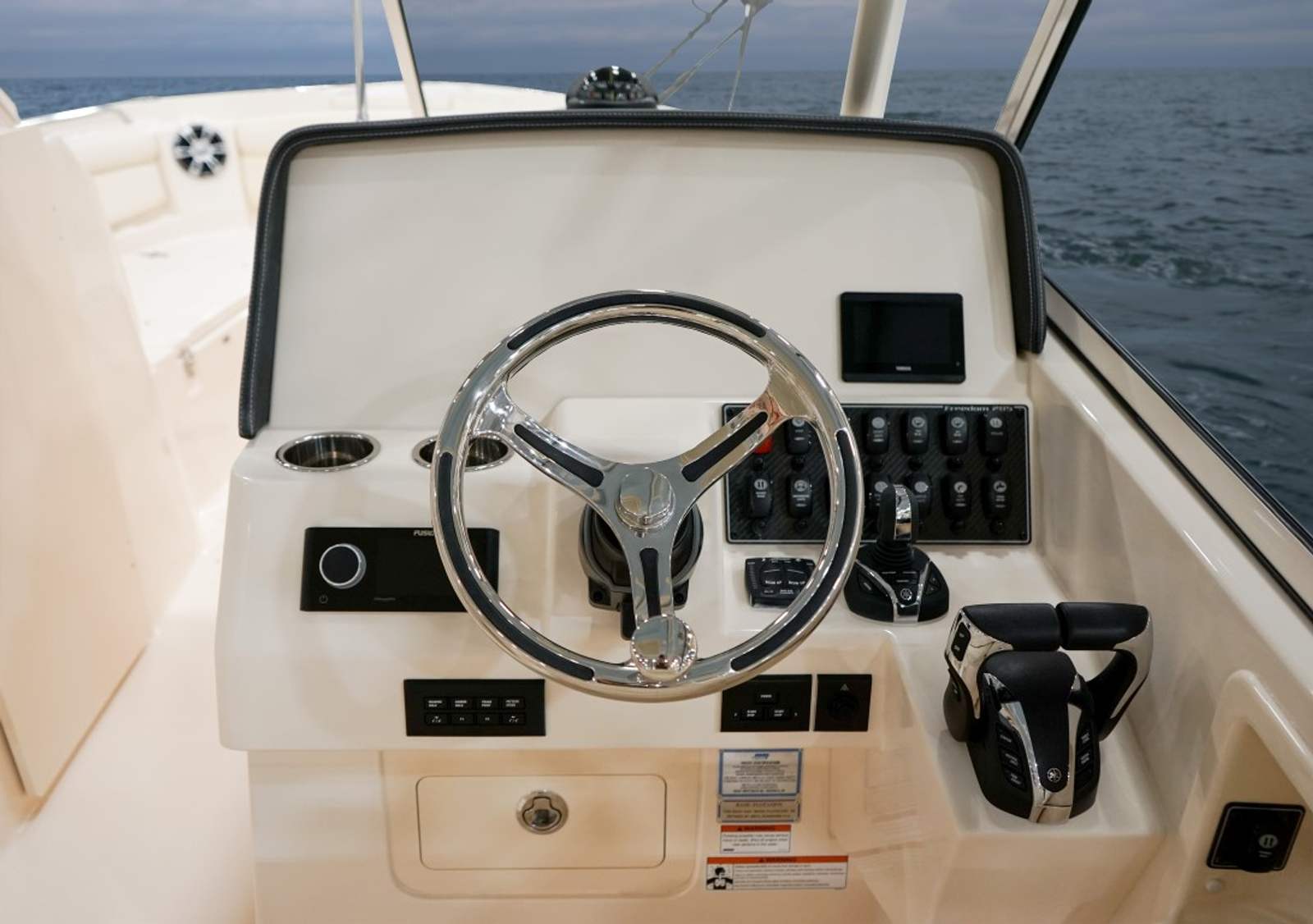 In summary, the 2026 Grady-White Freedom 285 is a standout dual console boat for sale that combines cutting-edge performance, luxurious comfort, and unmatched versatility. With its dual Yamaha F300XSB engines, custom features like the Loose Style Line Tape, Sun Platform Insert with Cushion, and the striking Coastal Fog Blue gel coat, this Grady-White boat for sale is ready to deliver unforgettable experiences on the water.If you are searching for a new dual console boat that offers the perfect blend of style, power, and practicality, the Grady-White Freedom 285 is an exceptional choice. Discover the joys of boating with a vessel that is as capable as it is beautiful, and take the first step toward your next adventure by reaching out for more information today.