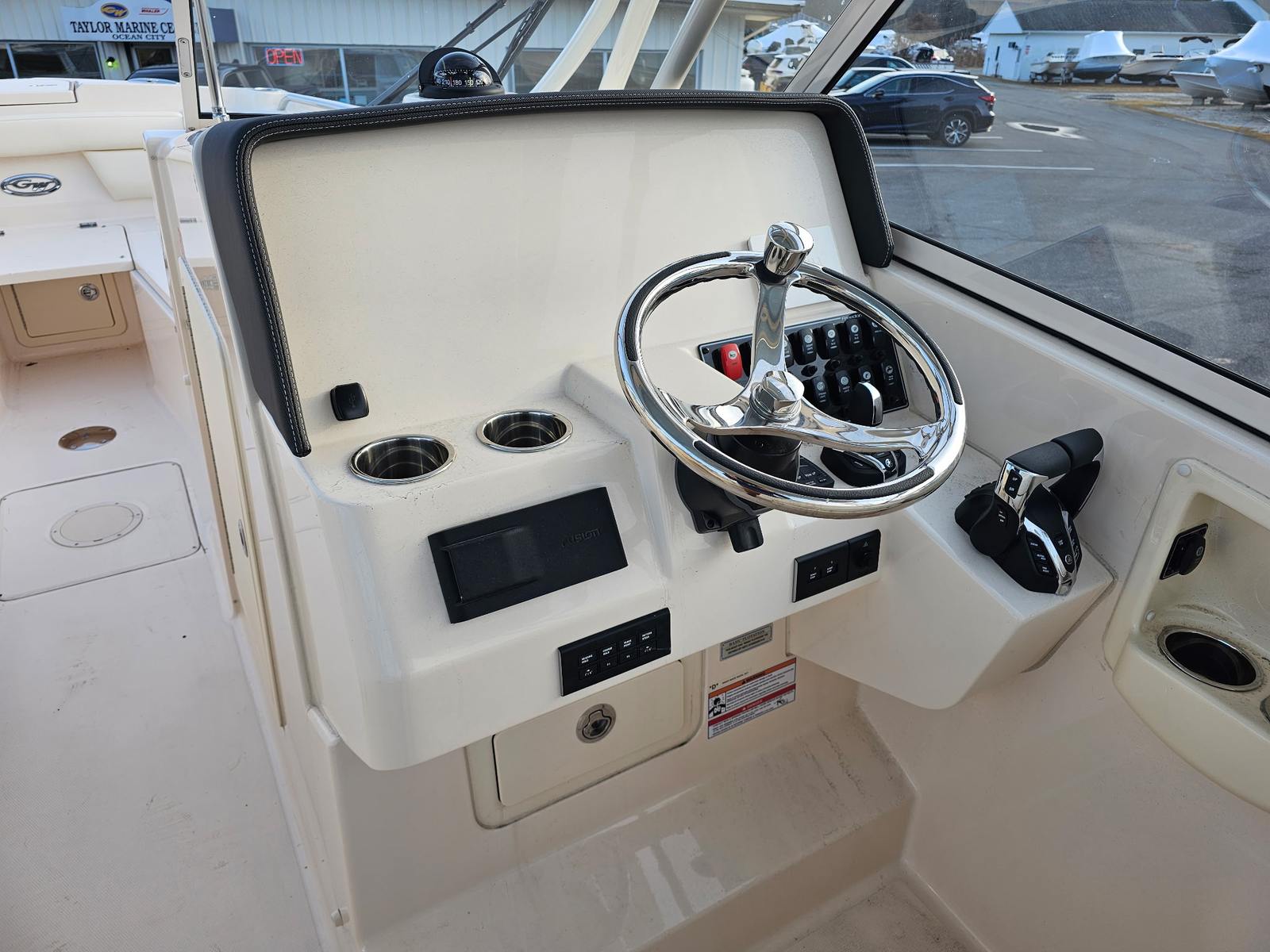 The Grady-White Freedom 285 is loaded with special features that set it apart from other boats in its category. The Sun Platform Insert with Cushion offers a comfortable space for sunbathing or relaxing, while the Side Bar with Corian and Sink adds a touch of elegance and convenience for entertaining guests. The refrigerator, available with the Side Bar, ensures your refreshments stay cool throughout your journey.Aesthetics are elevated with the Celestial Blue hull color and matching Hard Top Underside, creating a cohesive and striking appearance. The Ivory Aft Tonneau Cover and Ivory Bow Cover provide protection and style, while the Electric Sure Shade Top in Oyster offers adjustable shade for maximum comfort. Under Water Lights add a dramatic effect for evening cruises, enhancing both safety and ambiance. These features combine to create a luxurious and functional environment, making the Freedom 285 a standout Grady-White boat for sale.