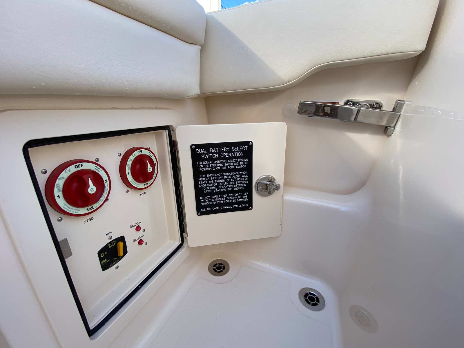 Owning a Grady-White Freedom 285 dual console boat opens the door to a world of fun, relaxation, and adventure. The spacious layout is perfect for socializing, with plenty of seating and open areas for guests to mingle, dine, or lounge. The sun platform insert with cushion transforms the deck into a luxurious sunbathing haven, while the refrigerator in the bar keeps your favorite drinks and snacks within easy reach. Underwater lights create a magical atmosphere for evening cruises, making every moment on the water memorable.The Freedom 285’s dual console design offers exceptional versatility, allowing you to seamlessly transition between fishing, cruising, and entertaining. The ample storage space ensures your gear is organized and accessible, while the protective covers and shade options provide comfort in any weather. With its powerful dual Yamaha engines, you’ll enjoy thrilling performance and reliable operation, making every outing a pleasure.