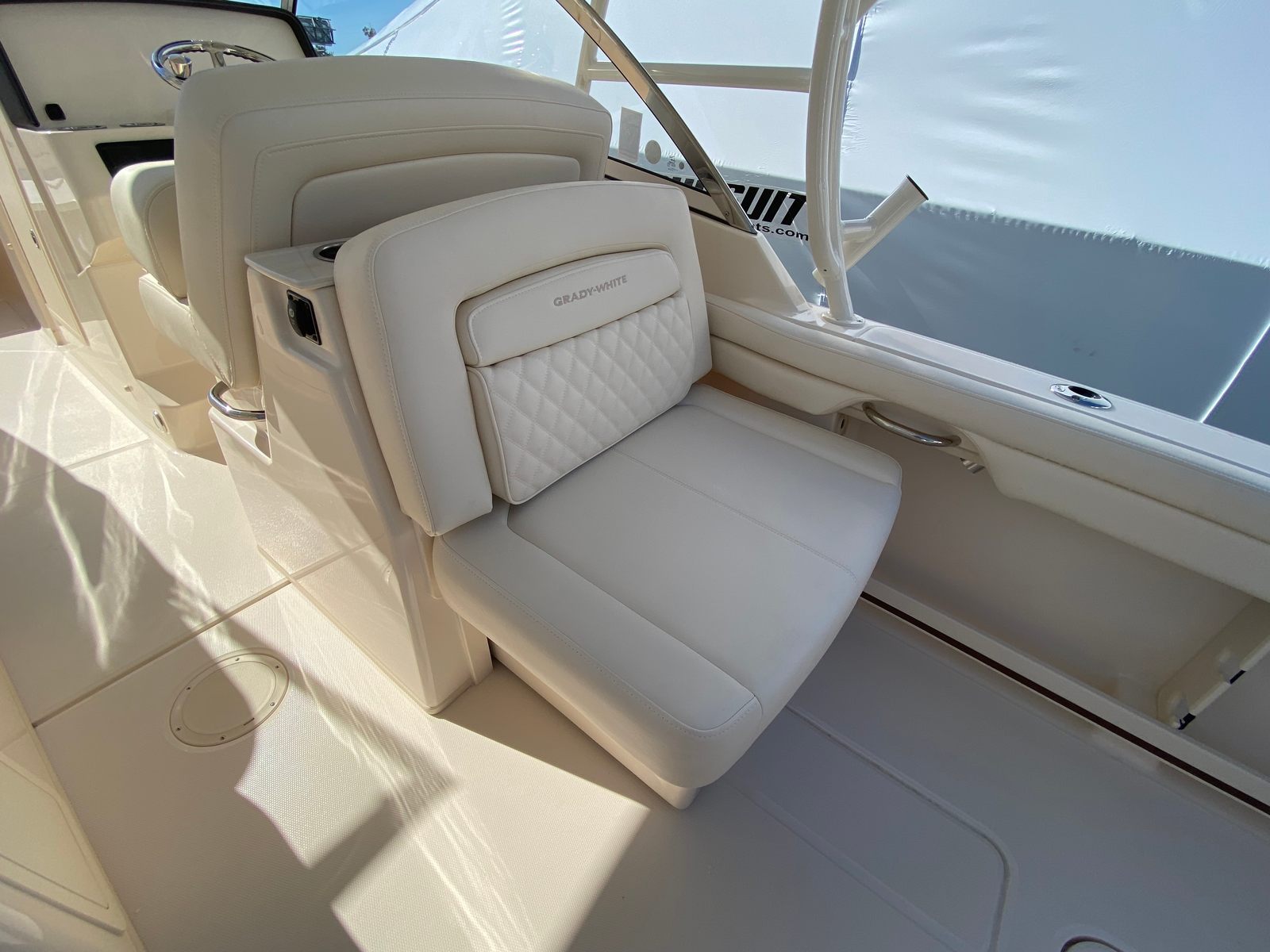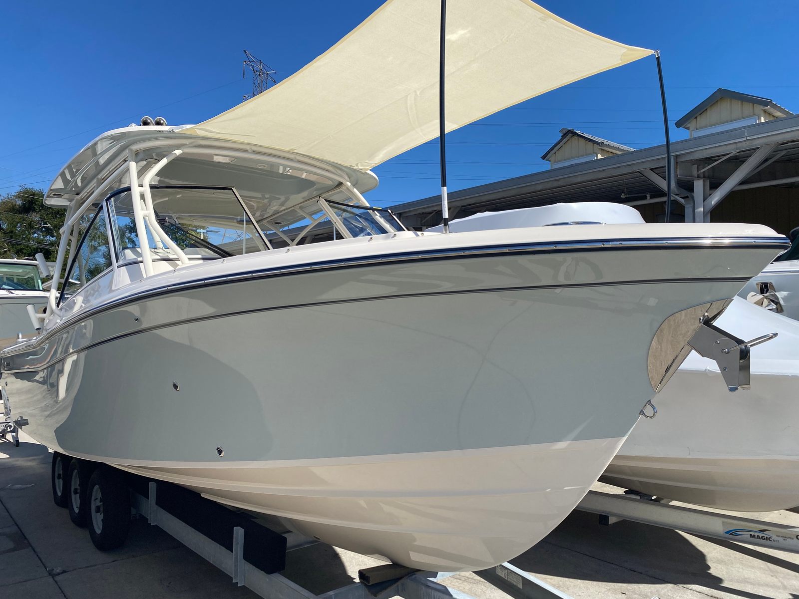 The 2026 Grady-White Freedom 285 stands out as a premier dual console boat, offering a spacious and intelligently designed layout that maximizes comfort and utility. With an impressive length of 28 feet, this vessel provides ample room for guests, gear, and all your favorite activities. The new condition ensures you’ll enjoy the latest advancements in marine technology, craftsmanship, and style. The Freedom 285’s sleek profile is enhanced by the eye-catching Sage Gray gel coat, complemented by custom silver logos installed by special request, giving this boat a unique and sophisticated appearance on the water.