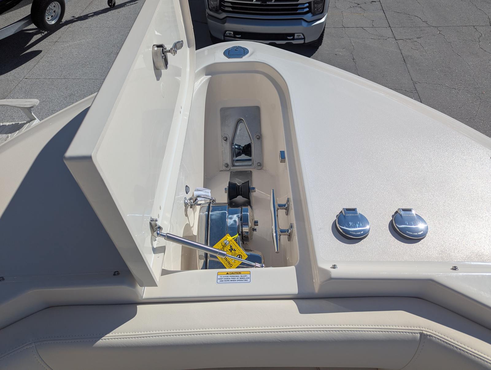 The Grady-White Freedom 307 is designed with practicality in mind. Its dual console layout offers ample storage for gear, water toys, and personal items, keeping the deck clutter-free and organized. The twin Yamaha F350 engines not only provide impressive speed but also make docking and maneuvering straightforward, especially in crowded marinas or tight slips.Fuel efficiency is a hallmark of Yamaha engines, allowing you to spend more time on the water and less time refueling. The boat’s thoughtful design ensures easy access to all areas, making maintenance and cleaning hassle-free. The Electric Sure Shade Top Oyster and other shade options provide quick and convenient protection, so you can adapt to changing conditions with ease.
