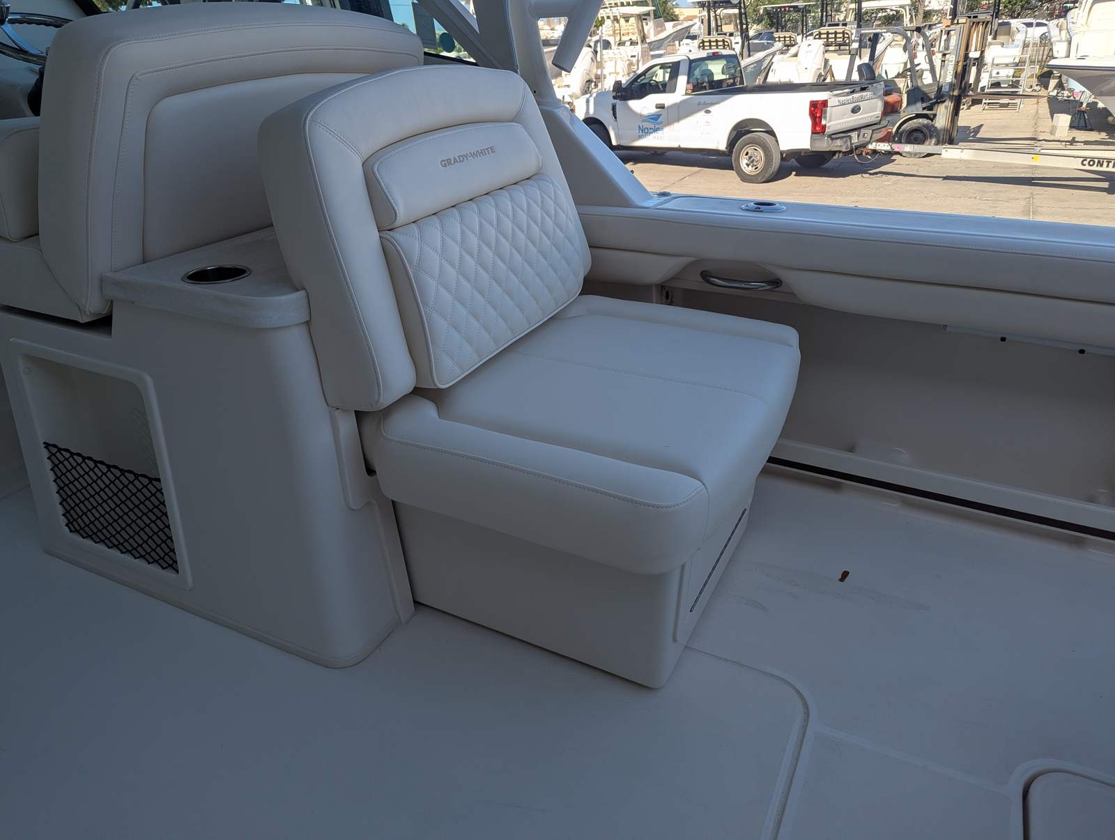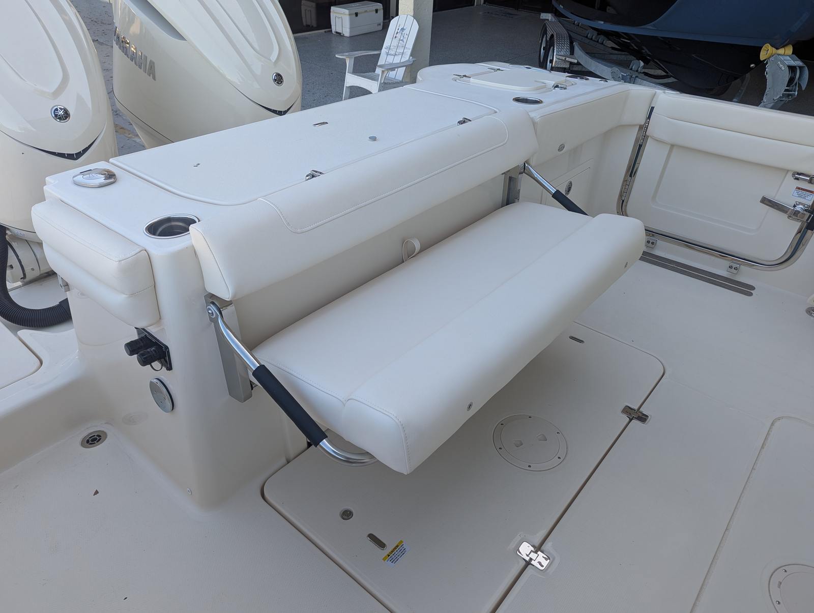 Power and reliability are at the heart of the Grady-White Freedom 325. Equipped with twin Yamaha F350 engines, this boat boasts a combined 700 horsepower, delivering exhilarating speed and smooth handling in a variety of conditions. The Yamaha prerig ensures seamless integration and optimal performance, allowing you to enjoy effortless acceleration, responsive maneuvering, and confidence-inspiring control. Whether you are cruising along the coastline, heading offshore for a day of fishing, or enjoying water sports, the Freedom 325’s robust powertrain provides the performance you need for every adventure.