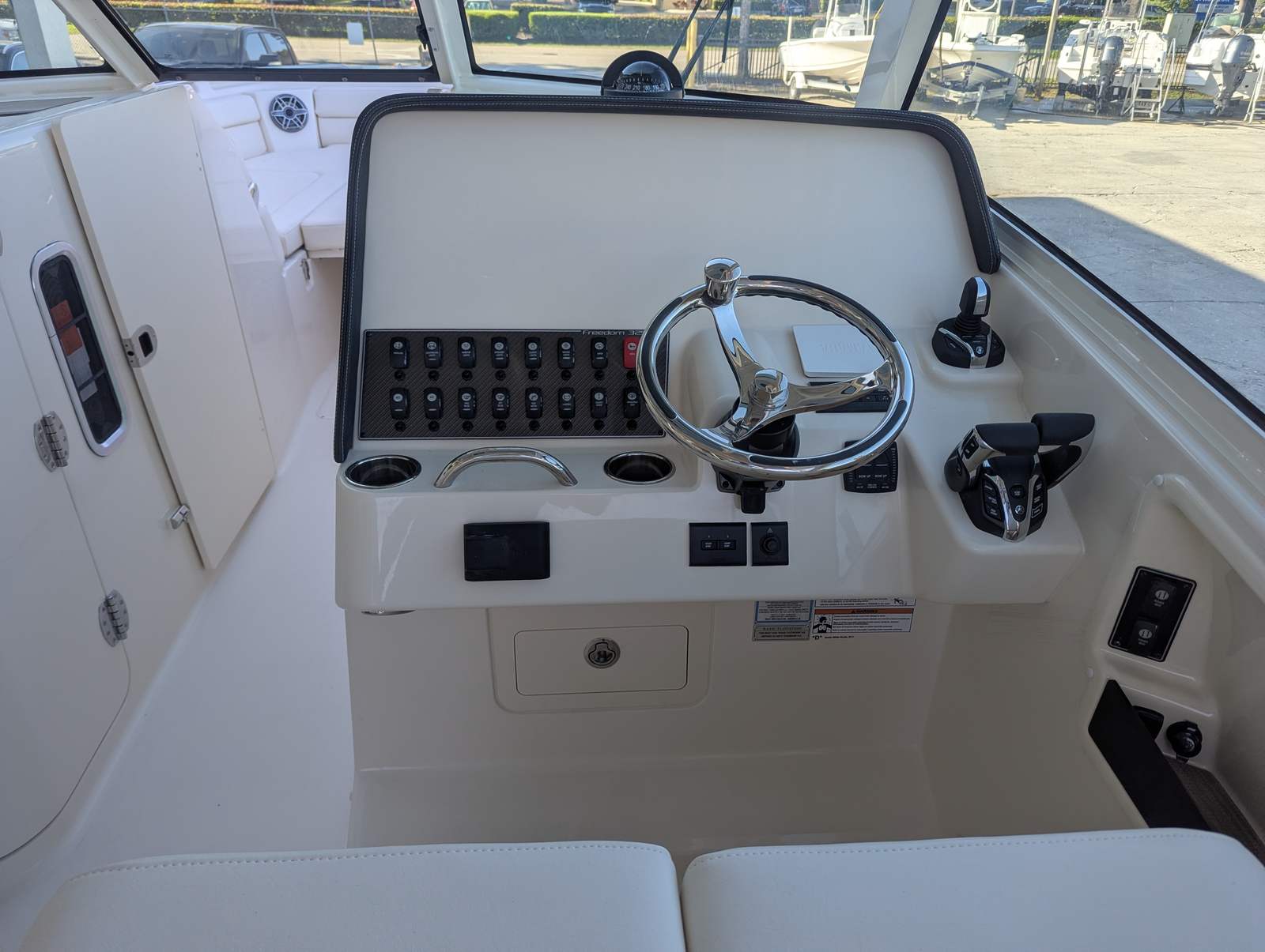 Owning the Grady-White Freedom 325 means embracing a lifestyle of fun, relaxation, and adventure. The dual console layout offers exceptional versatility, allowing you to seamlessly transition between cruising, fishing, and entertaining. The spacious bow and cockpit areas provide plenty of room for family and friends to spread out, relax, and enjoy the ride. The plush seating, ample shade, and thoughtful amenities create a welcoming environment for socializing, sunbathing, or simply taking in the breathtaking views. With its advanced engineering and premium materials, the Freedom 325 delivers a smooth, quiet ride, ensuring every journey is as enjoyable as the destination.