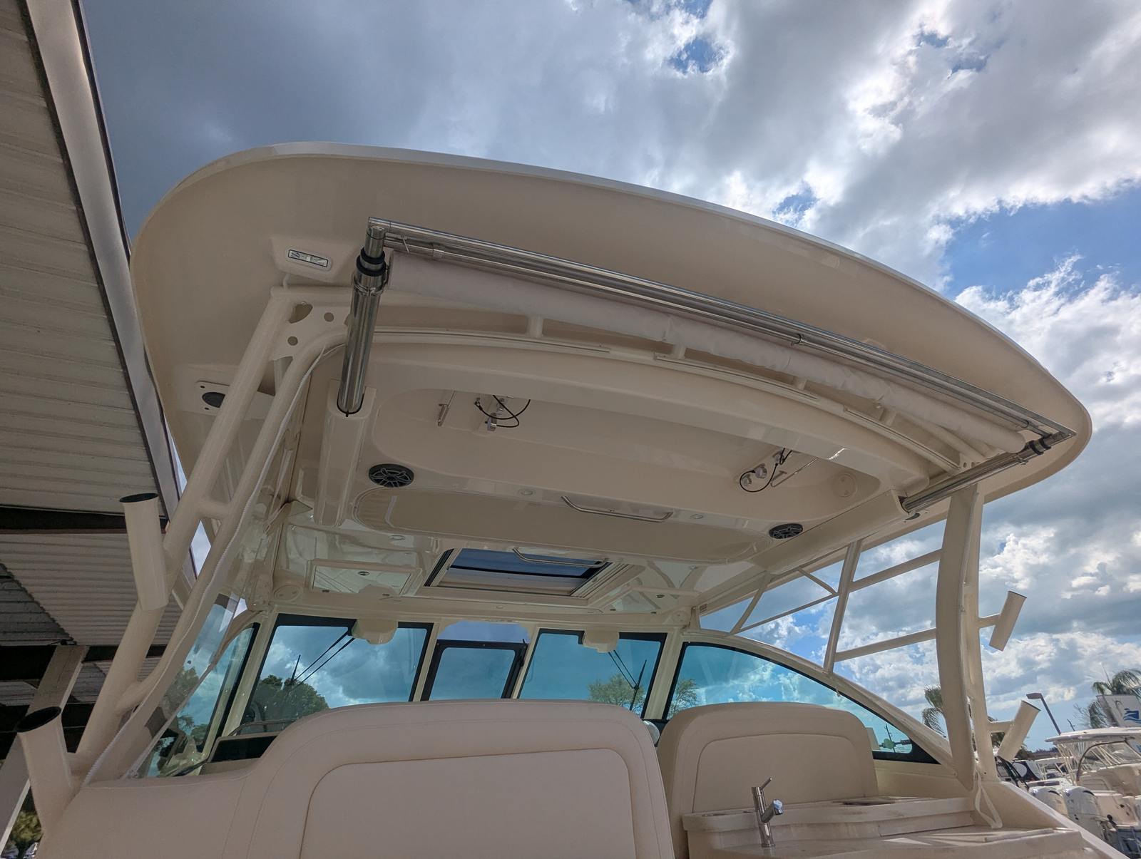 The Grady-White Freedom 375 is designed with practicality in mind, making ownership as enjoyable as it is rewarding. The advanced Yamaha Wireless Joystick system takes the stress out of docking, allowing you to navigate tight spaces with confidence and ease. The triple Yamaha XF450 engines provide not only impressive power but also reliable performance for long days on the water.The included Ivory Bow Shade, Top Aft Curtain, Top Drop Curtain, and Bow Cover offer flexible options for protecting your crew from the sun and weather, ensuring comfort no matter the conditions. The spacious layout and thoughtful storage solutions make it easy to bring along all your gear, whether you are planning a day of fishing, watersports, or simply relaxing at anchor.