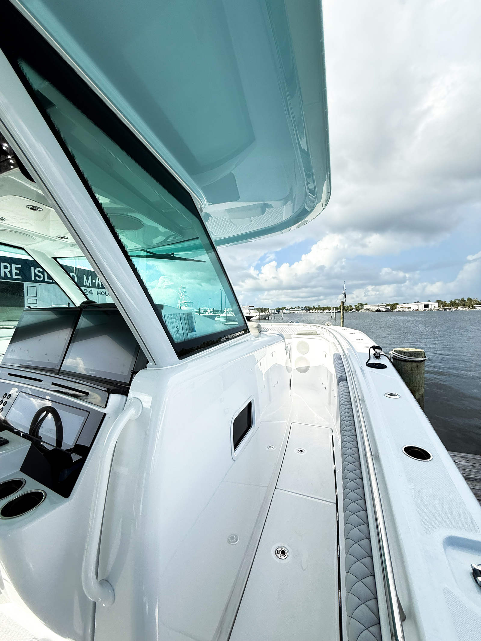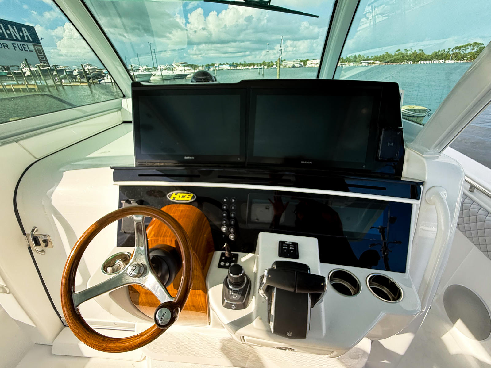 The Hcb 48 Campeon is as practical as it is luxurious. Its thoughtful design includes ample storage for gear, provisions, and personal items, ensuring you are always prepared for your next adventure. The dual Garmin screens and advanced sonar make navigation and fish-finding effortless, while the XM Weather feature keeps you ahead of changing conditions. Docking is simplified by the yacht’s responsive handling and multi-engine setup, allowing for precise maneuvers in tight spaces.Fuel efficiency is optimized through modern engineering, helping you maximize your time on the water without frequent refueling stops. The transom cooler seats offer convenient storage for drinks and snacks, making it easy to entertain guests or enjoy a quiet moment with family. The high gloss teak/maple flooring not only adds beauty but is also easy to maintain, ensuring your yacht remains pristine for years to come.