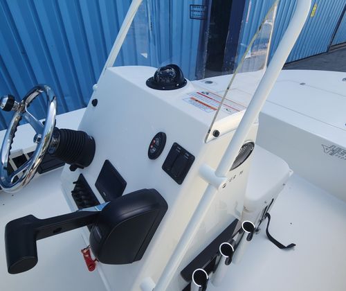 The Hewes Redfisher 16 is packed with premium features designed to enhance your time on the water. The Jackplate with Blinker Switch 4" allows for optimal engine height adjustment, improving shallow water performance and maximizing efficiency. The upgraded Edson steering wheel with a power knob (stainless) adds a touch of luxury and ergonomic comfort, making long days on the water more enjoyable. Trim tabs are included to help you fine-tune the boat’s ride and stability, ensuring a smooth journey regardless of water conditions.The hull’s two-tone color scheme in Haze Grey and Pure White not only looks stunning but also reflects Hewes’ commitment to quality and style. White caulking throughout the vessel provides a clean, polished finish, further enhancing the boat’s visual appeal. Every detail of the Redfisher 16 has been thoughtfully designed to deliver both functionality and aesthetics, making it a standout choice among center console boats for sale.