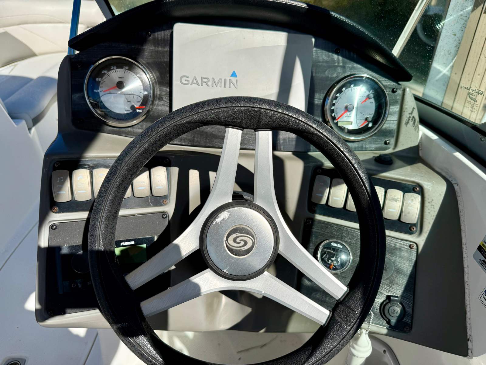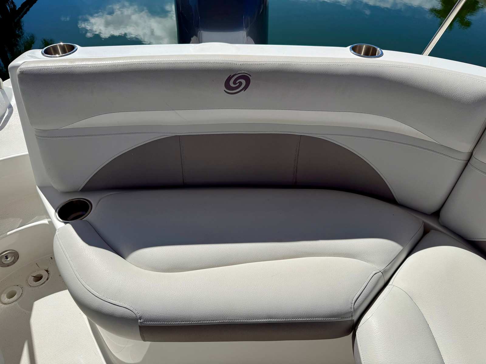 This 220DC comes well equipped with a Garmin 9-inch navigation display with integrated sonar for confident navigation, an AM/FM/Bluetooth stereo system with bow-to-stern speakers, a fully enclosed marine head, a convenient wet bar with freshwater sink, ample seating throughout, and generous storage options for gear and watersports equipment. Whether you’re out for a relaxing cruise, a day of sandbar hopping, or enjoying watersports with family and friends, this Hurricane is ready to deliver.