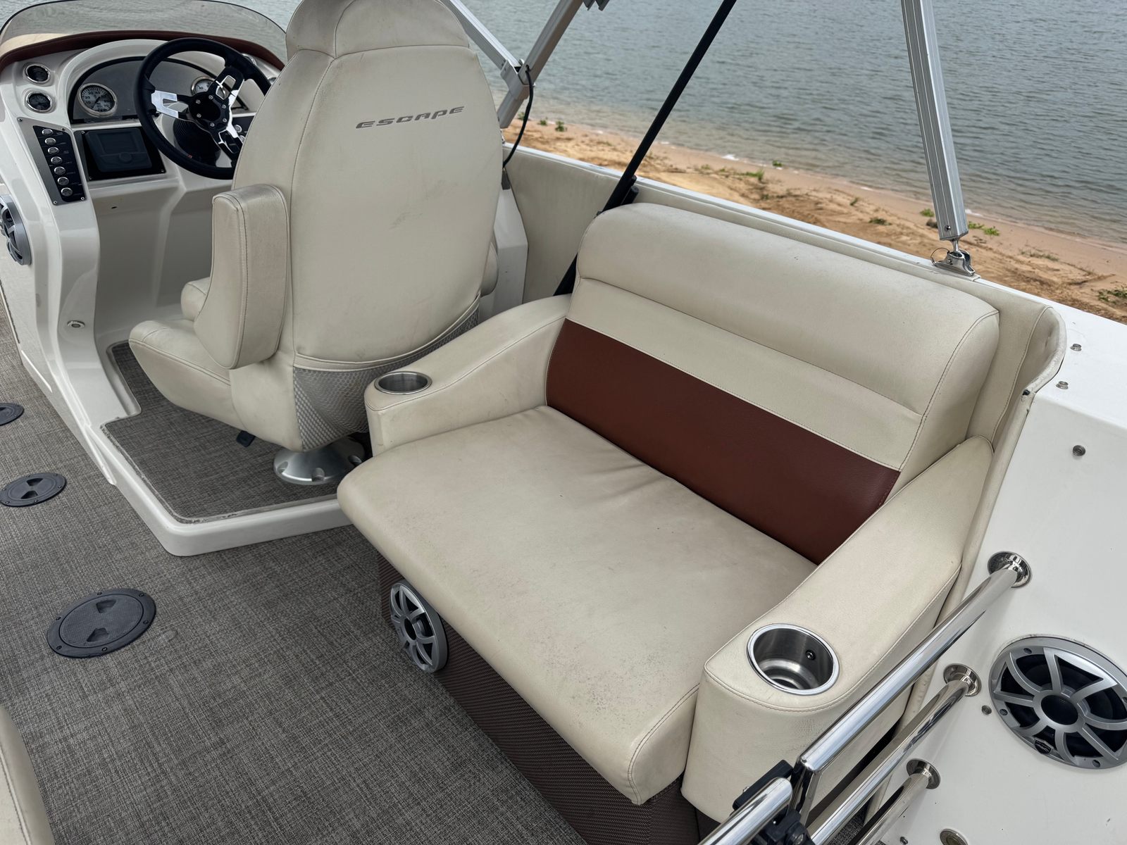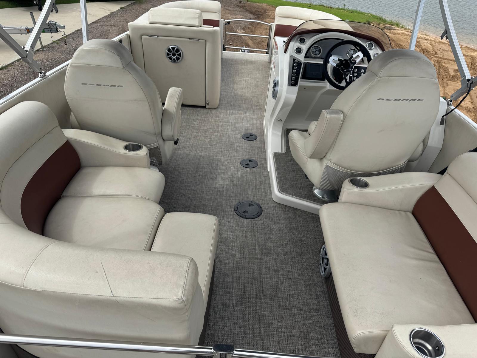 Powering the Larson Escape 21 is a robust 175-horsepower engine, delivering impressive performance for a pontoon boat of its class. Whether you’re cruising at a leisurely pace or picking up speed for water sports, this engine provides smooth acceleration and reliable handling. With 300 engine hours, the motor has proven its reliability and is primed for many more seasons of enjoyment.The Escape 21’s performance is further enhanced by its stable pontoon design, which ensures a smooth and comfortable ride even in choppy conditions. Maneuvering is effortless, making docking and navigating tight spaces a breeze. The combination of power and stability makes this Larson boat for sale an excellent choice for both experienced boaters and those new to pontoon boating.