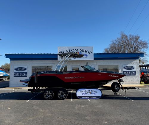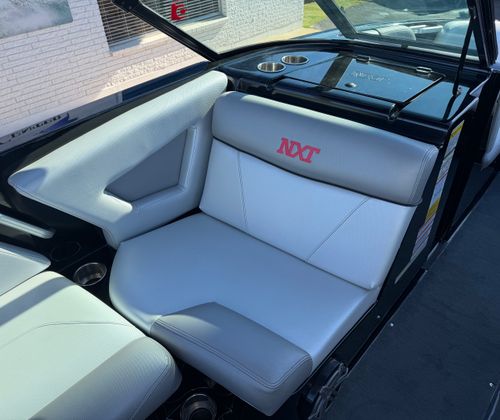 Now available for sale at our Used Boat Super Center in Lewisville, this well-kept 2017 MasterCraft NXT22 freshwater boat features a striking red metal flake and black gelcoat exterior paired with a white interior accented in grey. Powered by a reliable Ilmor 5000 MPI 5.7L engine producing 320 horsepower, this boat has only 131 hours and is built for both performance and comfort on the water.