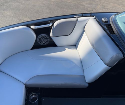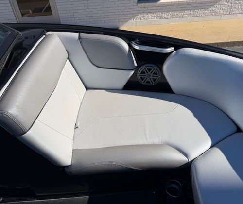 Equipped with the MasterCraft Surf System with center wakeplate and ballast system, this boat delivers excellent wakes and waves for wakeboarding and surfing, along with premium audio, practical features, and comfortable seating throughout.