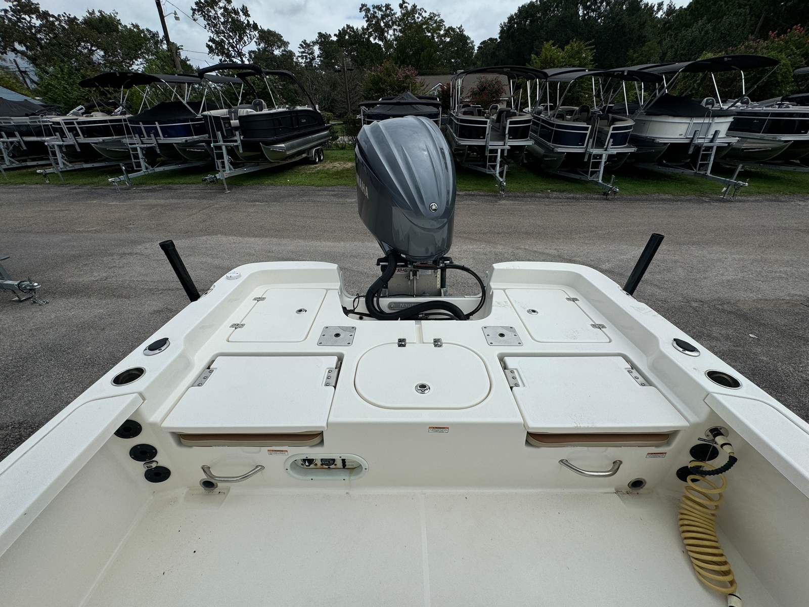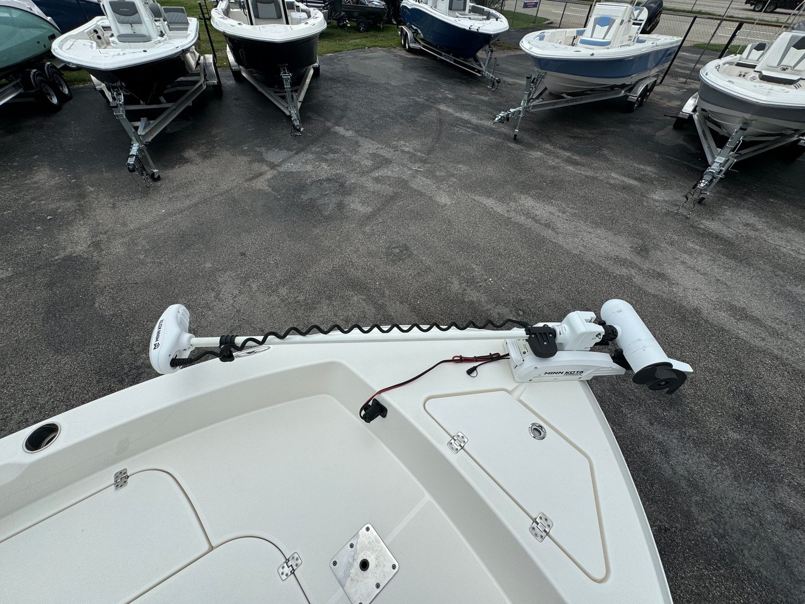 This Bay Boat is engineered for practicality and ease of ownership. The tandem axle trailer simplifies launching, hauling, and storing the boat, making it accessible for weekend getaways or spontaneous adventures. The hydraulic jackplate and trim tabs contribute to fuel efficiency and smooth handling, reducing operating costs and enhancing the overall boating experience. Storage compartments are thoughtfully integrated to keep gear organized and out of the way, allowing you to focus on enjoying your time on the water. The Minn Kota I Pilot trolling motor is a game-changer for anglers, providing hands-free operation and precise positioning for successful fishing trips.