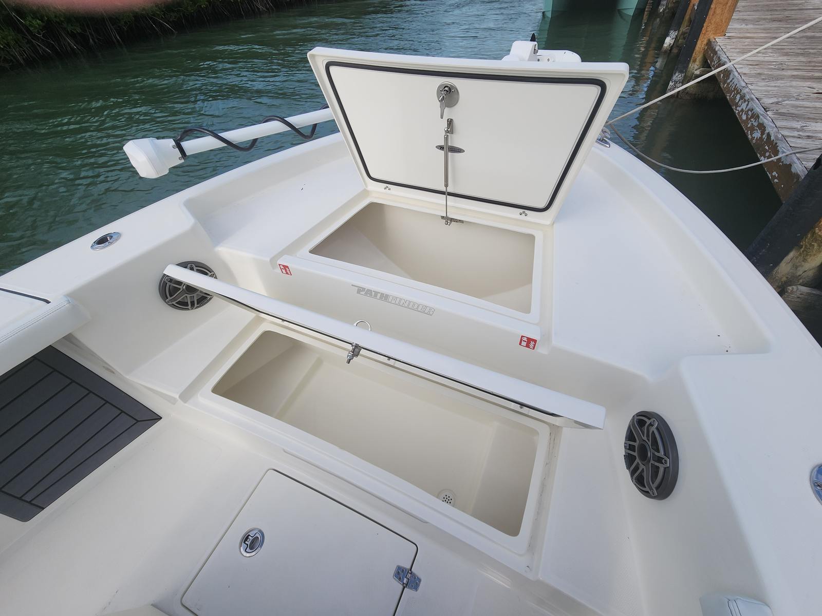 In summary, the 2026 Pathfinder 2400 Open is a remarkable center console boat for sale that offers a winning combination of power, innovation, and luxury. With its Yamaha 350XSA engine, Helm Master EX with Integrated Digital Electric Steering, 2nd Station Tower, upgraded Edson steering wheels, and trim tabs, this boat is designed to deliver an exceptional on-water experience. Whether you are searching for a Pathfinder boat for sale to elevate your fishing game, enhance your family adventures, or simply enjoy the freedom of the open water, the 2400 Open is ready to exceed your expectations.Do not miss the opportunity to own this outstanding center console boat. Contact your local dealer today to learn more about the Pathfinder 2400 Open and start your next boating adventure in style.