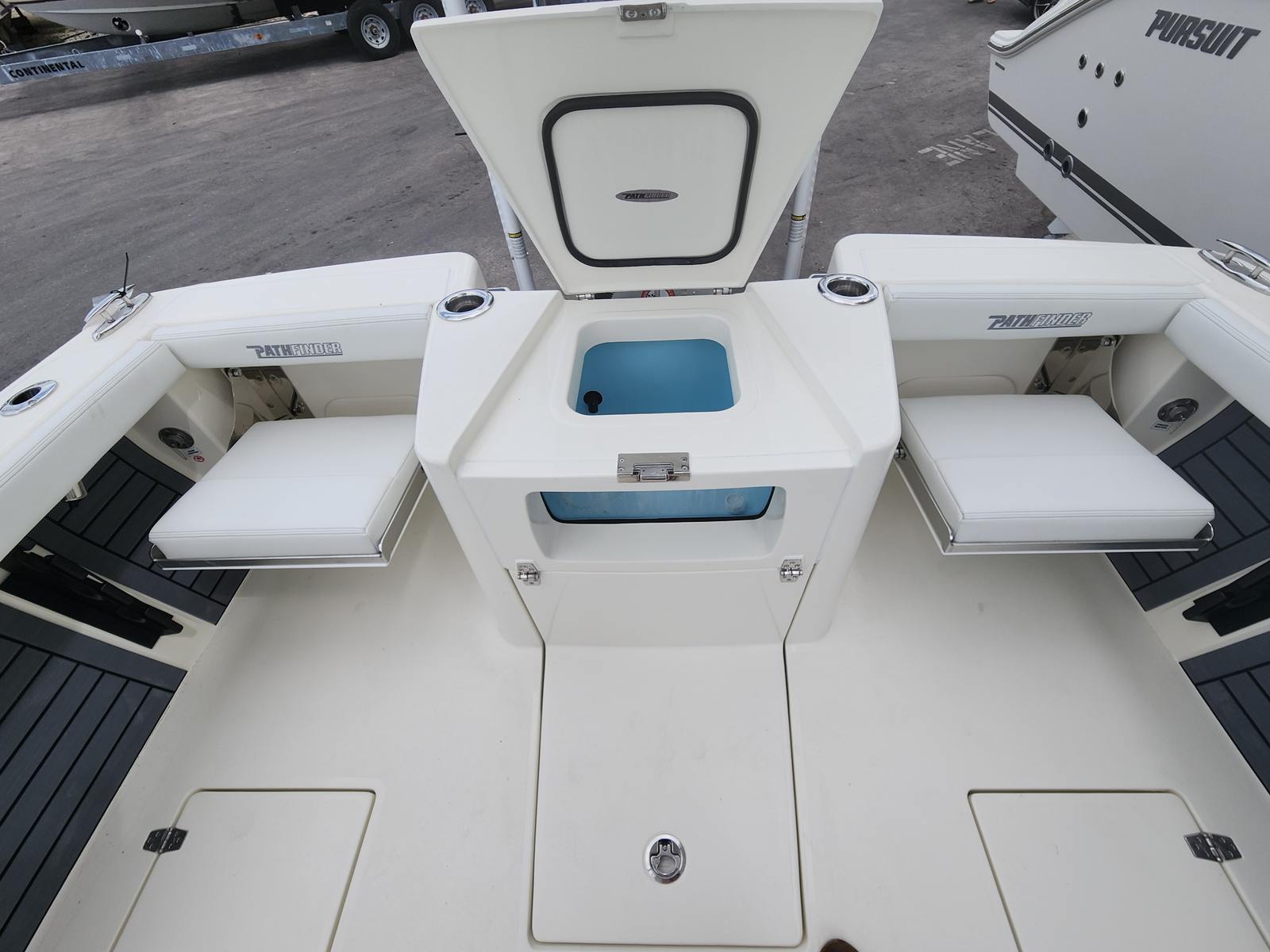 The Pathfinder 2700 Open is designed with practicality in mind, offering features that make ownership both convenient and enjoyable. The efficient engine and prop combination contribute to excellent fuel economy, allowing you to spend more time on the water and less time at the pump. The digital electric steering and Helm Master EX system simplify docking and maneuvering, even in tight spaces or challenging conditions.Ample storage throughout the boat ensures that all your gear, tackle, and personal items are organized and easily accessible. The robust construction and high-quality materials provide peace of mind, knowing your investment is built to withstand the rigors of saltwater environments and frequent use.