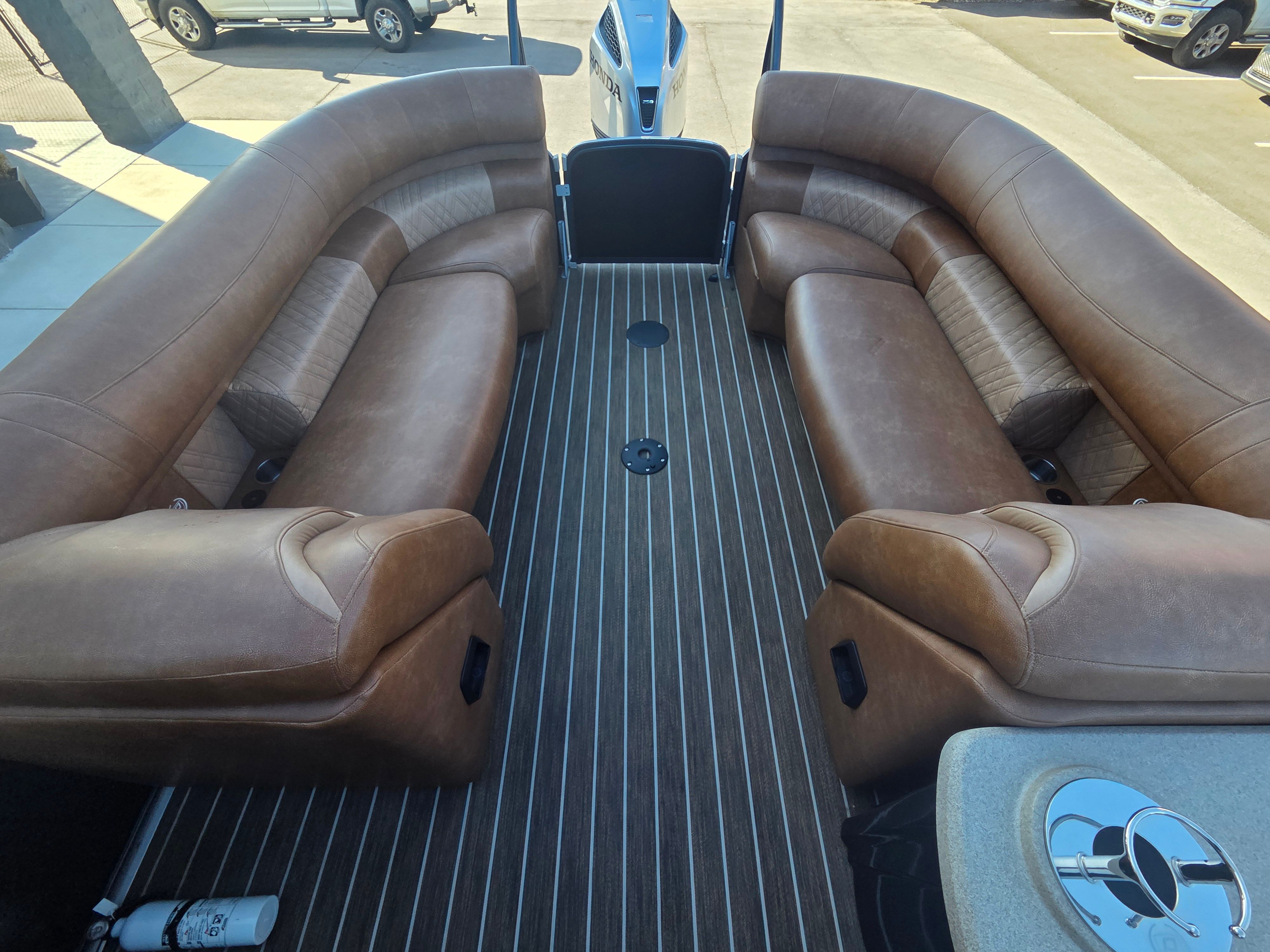 The Premier 270 Intrigue RF CL is loaded with features that enhance both functionality and enjoyment on the water. Its spacious deck layout is designed for maximum comfort, with plush seating and ample room for guests to relax and socialize. The rear-facing lounge configuration (RF CL) offers a unique and inviting space for sunbathing or enjoying the scenery, while the high-quality materials and attention to detail throughout the boat reflect Premier’s commitment to excellence.This pontoon’s generous length provides plenty of room for movement, making it easy to host gatherings or accommodate larger groups. The thoughtful design ensures that every inch of space is utilized efficiently, with convenient storage compartments for stowing gear, water toys, and personal items. The durable construction and premium finishes ensure that this Premier boat for sale not only looks great but is built to withstand the rigors of regular use.