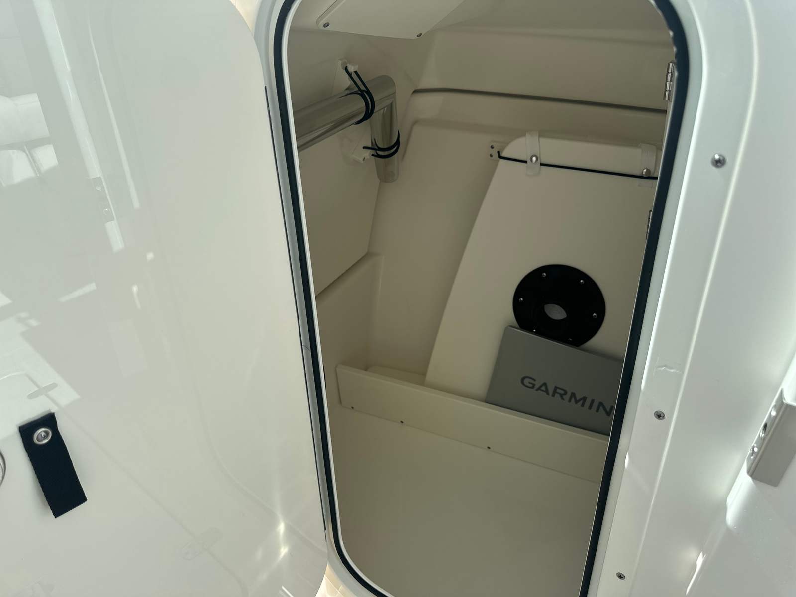 The Pursuit DC 246 is loaded with features that enhance both functionality and comfort. The Cadet Gray Connector and Side Curtains offer protection from the elements, allowing you to extend your boating season and enjoy outings in a variety of weather conditions. The Garmin Widescreen 12" Display Package provides state-of-the-art navigation and fish-finding capabilities, making every trip safer and more enjoyable. The Cadet Gray Instrumentation Cover keeps your controls protected and looking sharp, while the Deluxe Beach with Bow Boarding Ladder and Fresh Water system makes boarding from the beach or sandbar a breeze.For those who love to relax in the sun, the Forward Med Style Sunshade and Aft Med Style Sunshade provide ample coverage, ensuring comfort for everyone on board. The Port Transom Folding Seat, forward-facing, offers additional seating options without sacrificing deck space. Blue LED Accent Lights at the mid-level add a touch of elegance and ambiance for evening cruises. The Windshield Wiper with Fresh Water Sprayer ensures clear visibility in all conditions, adding to the safety and convenience of this exceptional Dual Console boat.