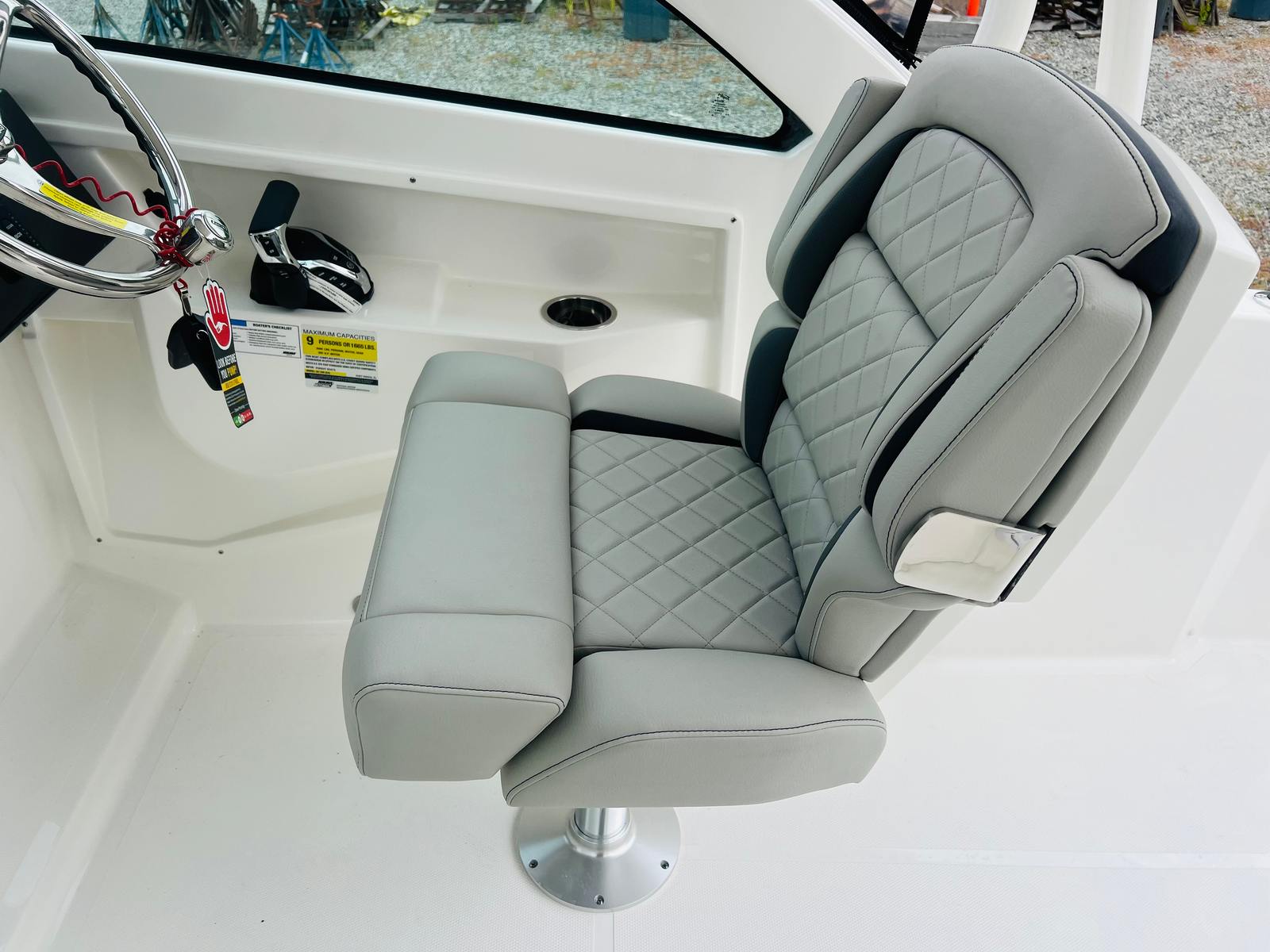 The 2025 Pursuit DC 246 is a standout Dual Console boat for sale, combining cutting-edge performance, luxurious features, and practical design in one impressive package. With its powerful Yamaha Digital F300 V6 Offshore engine, Neptune Gray hull, Scarlet bootstripe, Carbon helm, Sea Salt upholstery, Coastal Sunrise Interior Package, anchor windlass system with remote, underwater lights, electric fresh water head, and LED cockpit accent lights, this boat is ready to elevate your boating experience.If you are searching for a Pursuit boat for sale that delivers on every level—style, comfort, performance, and versatility—the DC 246 is the perfect choice. Don’t miss your chance to own this exceptional Dual Console boat. Contact your local dealer today to learn more and schedule a viewing. Your next great adventure on the water awaits!