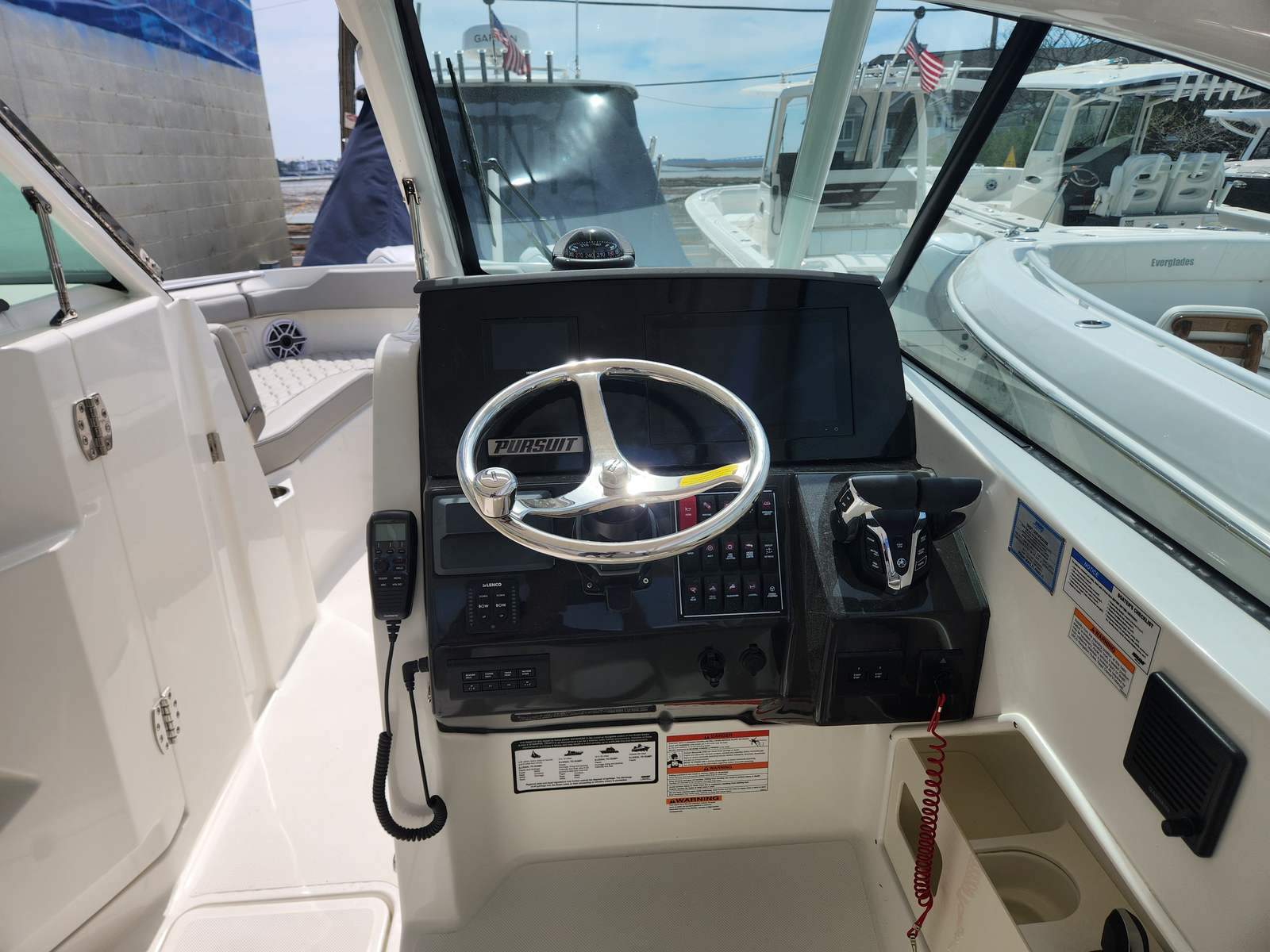 The Pursuit DC 266 is as practical as it is luxurious. The dual console design provides ample storage for gear, water toys, and personal items, keeping the deck clutter-free and organized. The anchor windlass add-on simplifies the process of securing your boat, making it easy to stop and enjoy your favorite spots without hassle. The boat’s efficient twin engines offer a balance of power and fuel economy, allowing you to spend more time on the water and less time at the fuel dock.Docking is made simple with the advanced maneuverability systems, giving you confidence in any marina or crowded anchorage. The durable construction and high-quality materials ensure that your Pursuit boat for sale will stand up to years of use, maintaining its beauty and performance season after season.