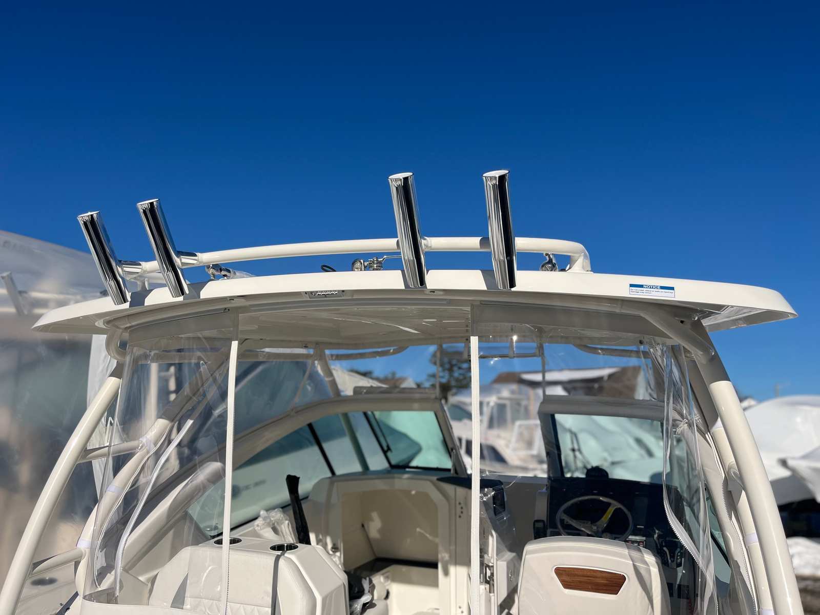 The Pursuit DC 266 is loaded with special features designed to enhance your time on the water. The Multifunction Display Interface puts navigation, engine data, and system controls at your fingertips, making it easy to monitor and manage every aspect of your journey. The anchor windlass system with remote simplifies anchoring, allowing you to secure your position with minimal effort.For those who love to relax and entertain, the bow Mediterranean style sunshade is stowable, providing flexible protection from the sun when you need it. The fiberglass bow table with bow and cockpit mounts offers a convenient spot for snacks, drinks, or socializing, while the bow sunpad filler with cushion transforms the bow area into a comfortable lounge space. Hardtop mounted rod holders (4) cater to anglers, keeping gear organized and accessible.Mid-level cockpit accent lights, LED blue (4), create a vibrant atmosphere for evening cruises, and the removable transom mount ski tow adds versatility for water sports enthusiasts. The stereo premium upgrade (JL Audio with custom tuned 6 channel DSP amp, subwoofer, 4 sport speakers, blue backlighting, external antenna, Sirius receiver, and a 3-month subscription) delivers exceptional sound quality, setting the mood for every outing.