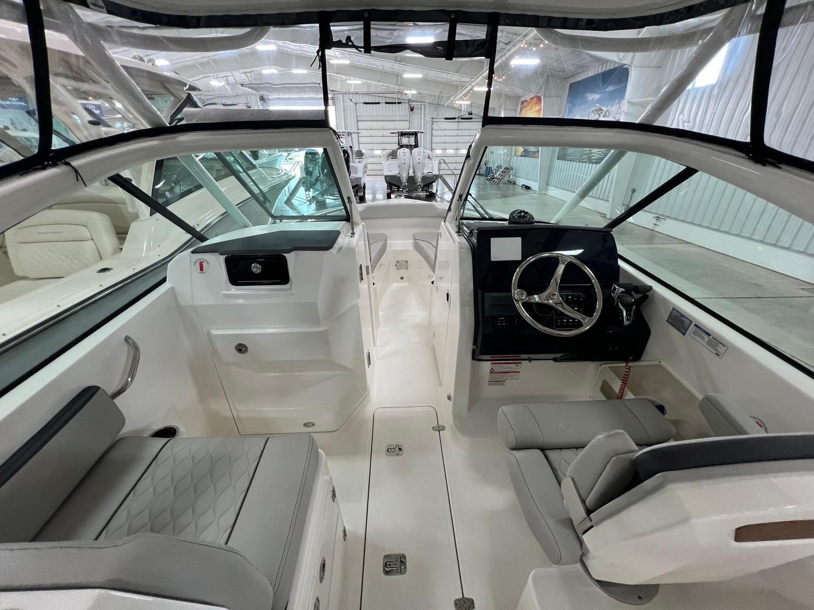 The Pursuit 266 DC is packed with features that cater to both relaxation and adventure. The dual console layout creates distinct spaces for both captain and passengers, offering ample seating and storage throughout the boat. The spacious cockpit is designed for socializing, with comfortable seating arrangements that make it easy to entertain friends and family. The bow area provides additional seating, perfect for soaking up the sun or enjoying a quiet moment on the water. Every inch of the Pursuit 266 DC is thoughtfully designed to maximize usability and enjoyment. The ergonomic helm station ensures that the captain has easy access to all controls and navigation equipment, while the wide walk-through windshield allows for seamless movement between the bow and cockpit areas. The boat’s generous beam enhances stability and provides plenty of room for everyone on board to stretch out and relax.
