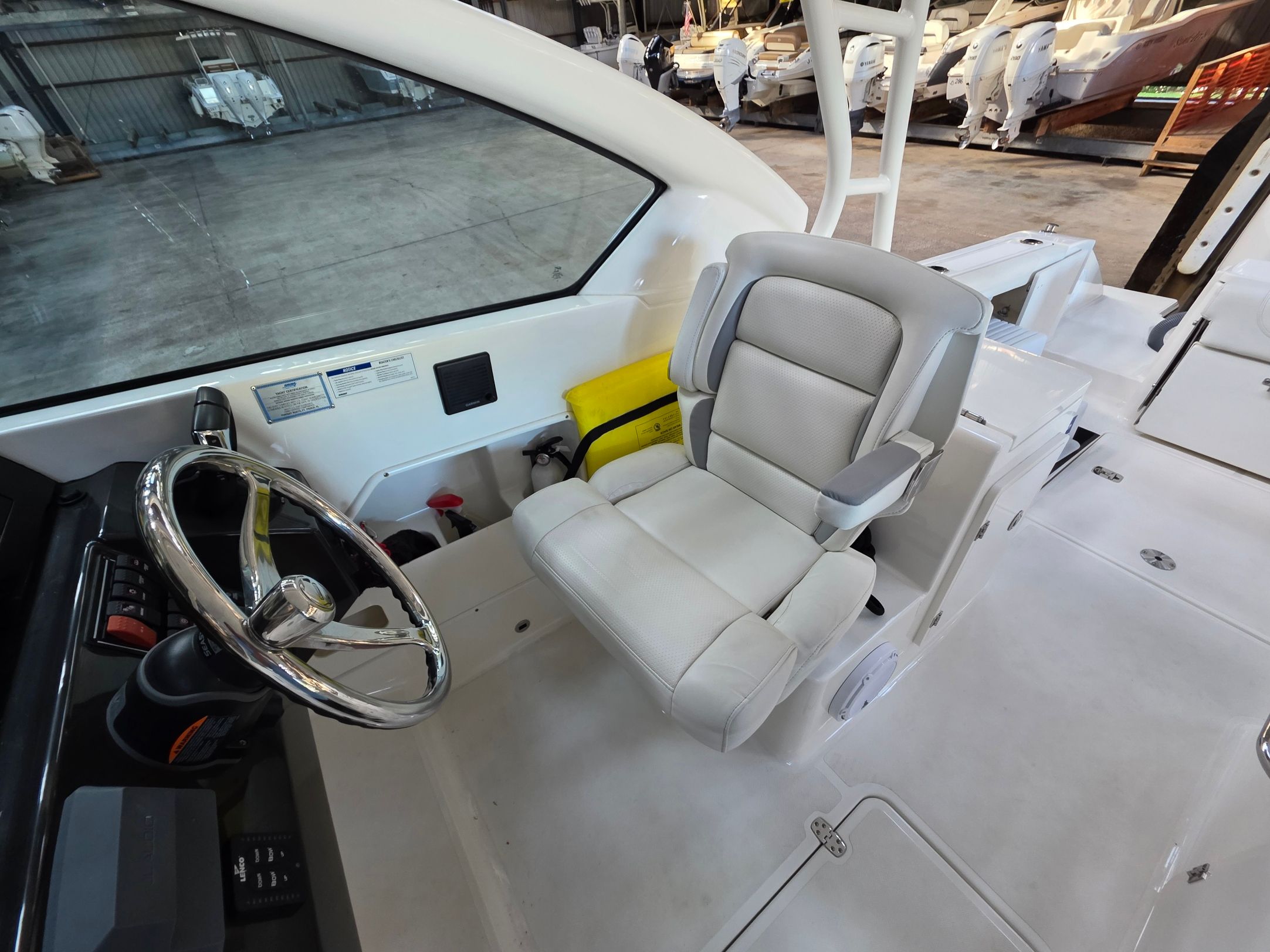 The Pursuit DC 266 Dual Console boat is thoughtfully designed to maximize comfort, convenience, and versatility. Its spacious deck layout allows for easy movement and socializing, while the dual console configuration provides protection from the elements and flexible seating options. The boat’s generous length of 27.33 feet ensures plenty of room for passengers, gear, and recreational equipment. Pursuit’s attention to detail is evident in every aspect of the DC 266, from the quality of the materials to the ergonomic design of the helm and seating areas. With two powerful engines and a robust hull, this boat is ready to tackle a variety of activities, from fishing and water sports to leisurely cruises and entertaining guests.