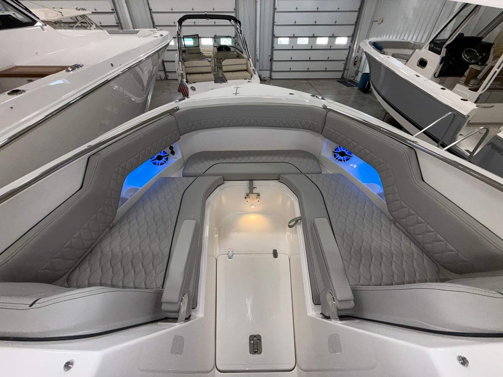 The Pursuit 326 DC is as practical as it is stylish. Thoughtful storage compartments make it easy to keep the deck clutter-free, while the intuitive layout simplifies movement around the boat. Docking is a breeze thanks to the responsive handling and well-placed cleats, making it easy to tie up at your favorite marina or waterfront restaurant. The efficient hull design contributes to fuel savings, allowing you to spend more time on the water and less time refueling. Whether you are planning a quick day trip or an extended adventure, this dual console boat for sale is equipped to meet your needs with ease and convenience.