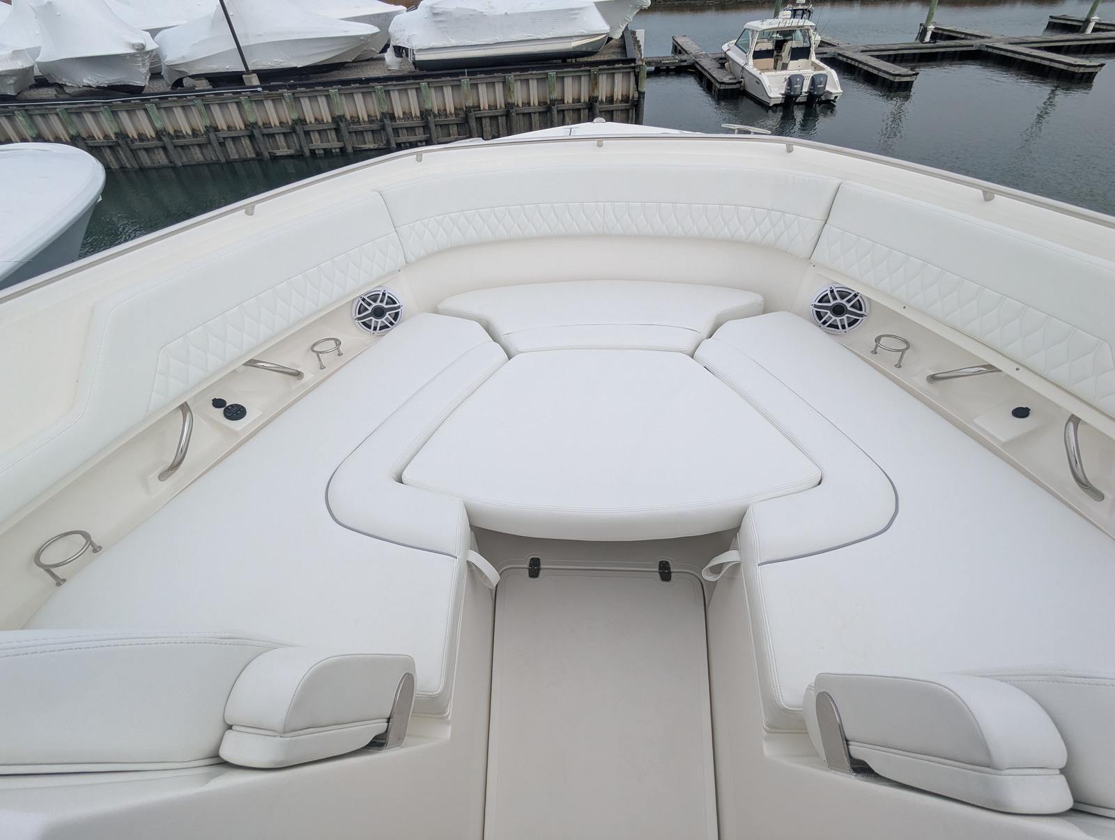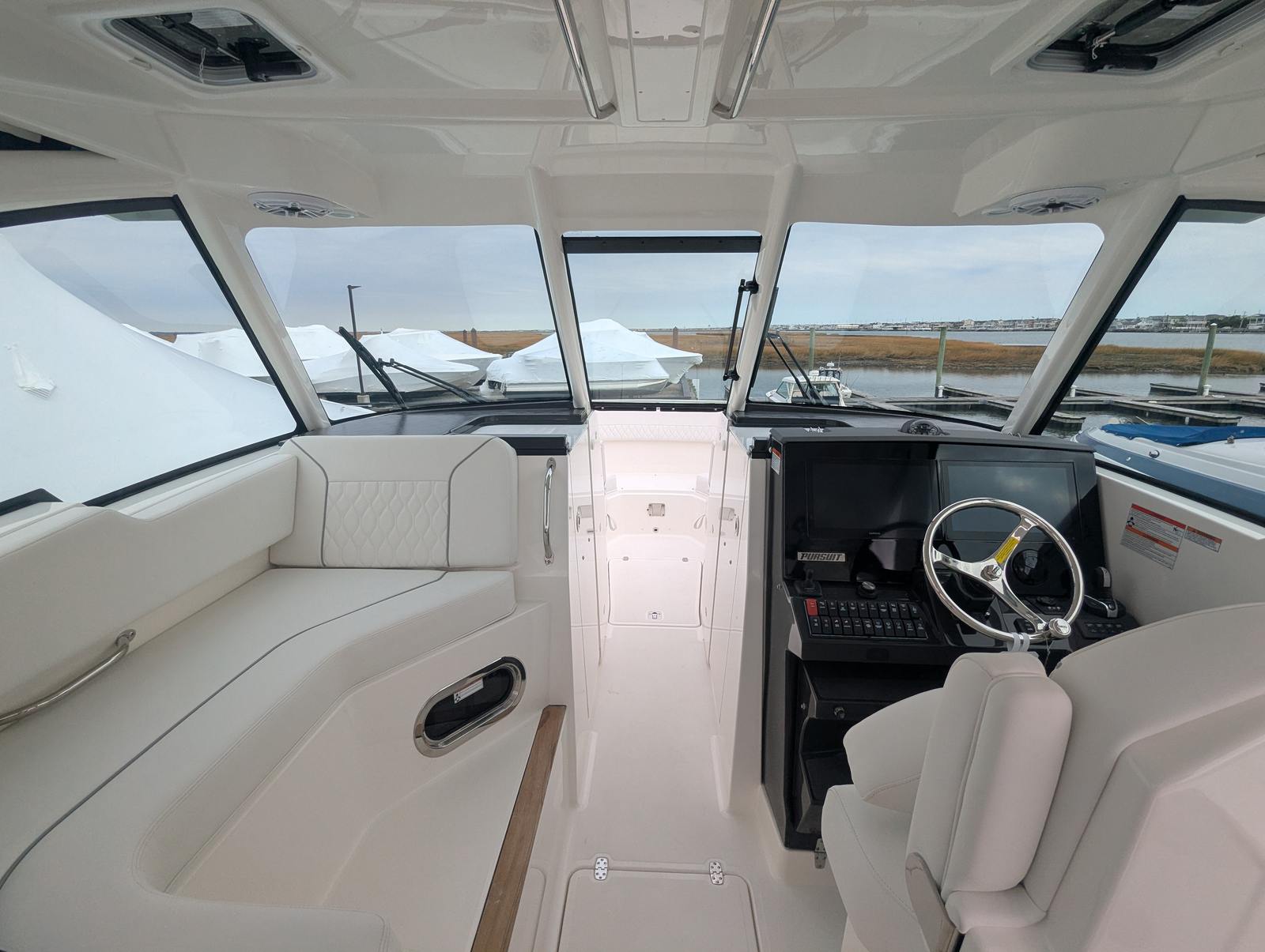 The Pursuit DC 326 is a 34.5-foot dual console boat that represents the pinnacle of modern marine engineering. Built for the 2026 season, this vessel is brand new and ready to deliver unforgettable adventures. The Arctic Blue hull, accented with an Arctic White and Quartz Gray bootstripe, gives the DC 326 a sleek, contemporary look that turns heads at every marina. Inside, the Tranquil Sea interior and upgraded white/gray upholstery create a relaxing and elegant atmosphere, making every outing feel like a luxury getaway.