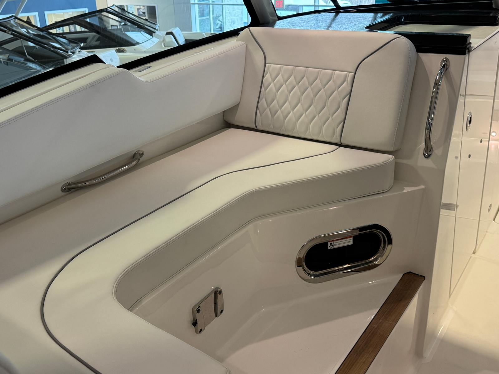 The 2026 Pursuit DC 326 is loaded with premium features that enhance both comfort and convenience. The Multifunction Display Interface keeps you informed and in control, while the manual engine flushing system ensures easy maintenance and longevity for your Yamaha engines. Entertain your guests in style with the bridge deck teak table, which offers both elegance and practicality, and can be conveniently stored when not in use. The custom retractable Makefast sunshade with one-touch operation provides instant relief from the sun, allowing you to create the perfect environment for relaxation or socializing at the touch of a button.For those who appreciate climate control, the air conditioning package with reverse cycle offers 6,000 BTU for the cabin and head, and a powerful 12,000 BTU for the cockpit (requires drop curtain), ensuring comfort no matter the weather. The 12V, 1.7 cu. ft. cooler with chill plate under the aft-facing seat keeps your refreshments perfectly chilled, making it easy to enjoy cold drinks and snacks throughout your day on the water.
