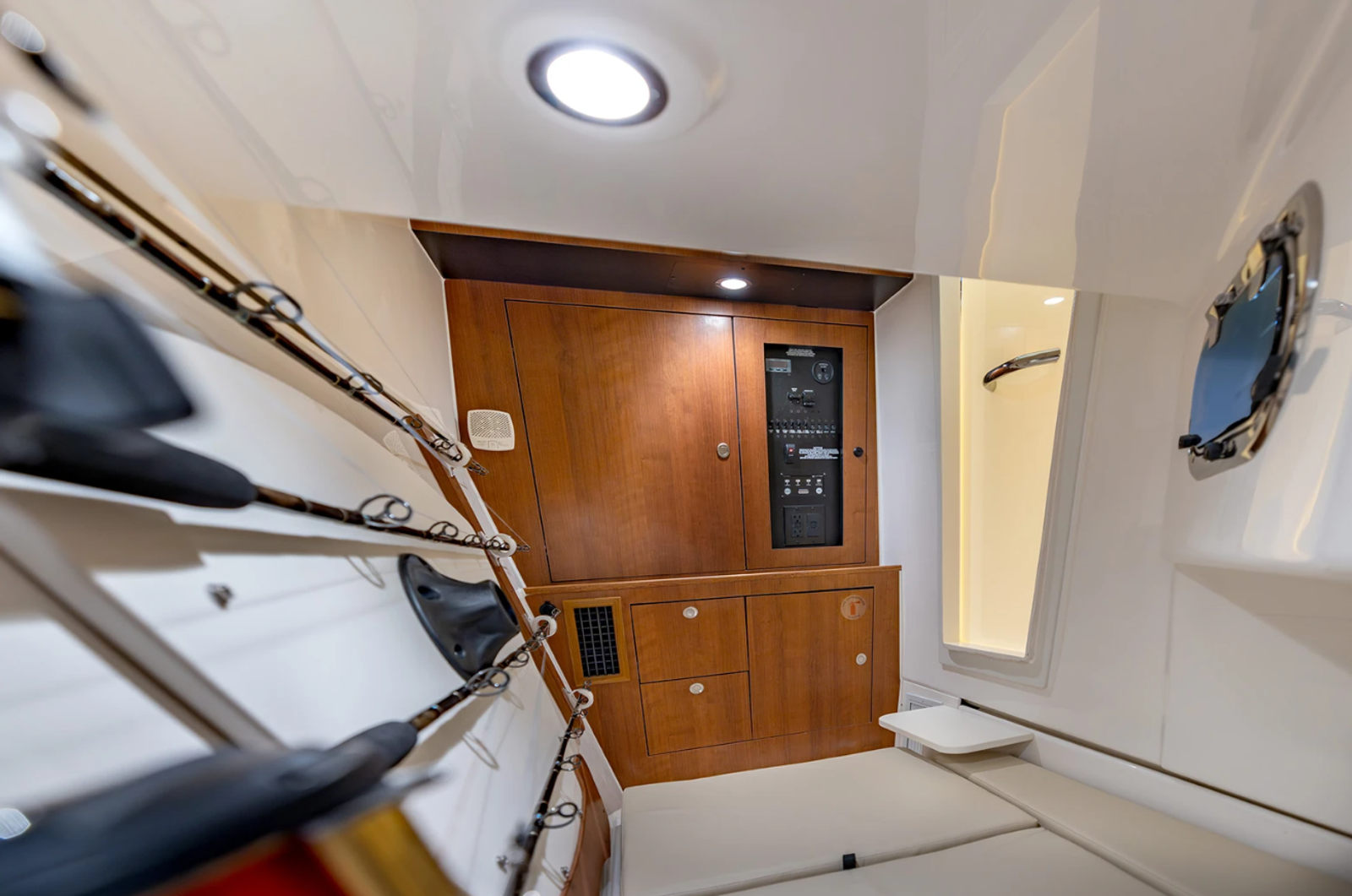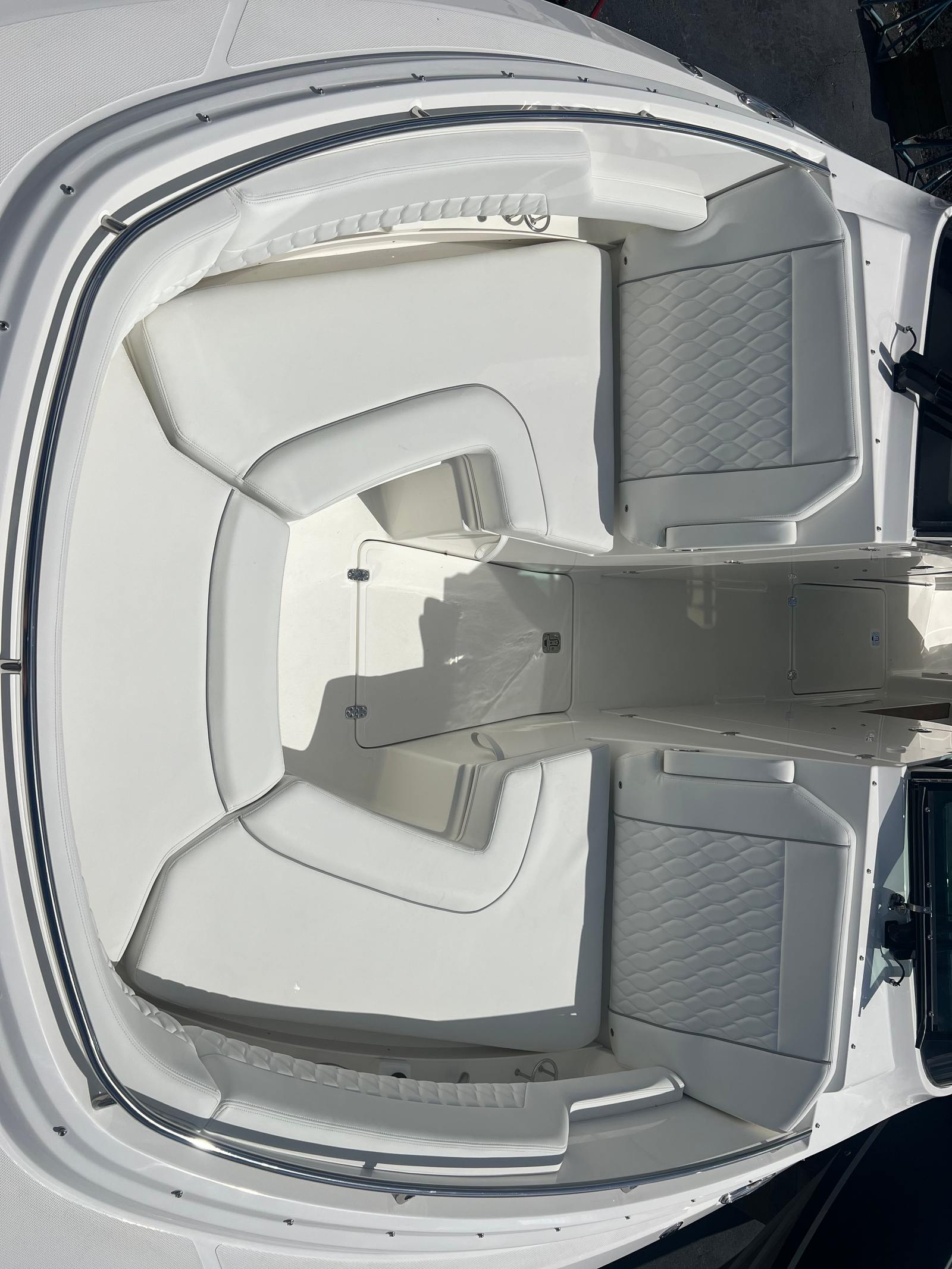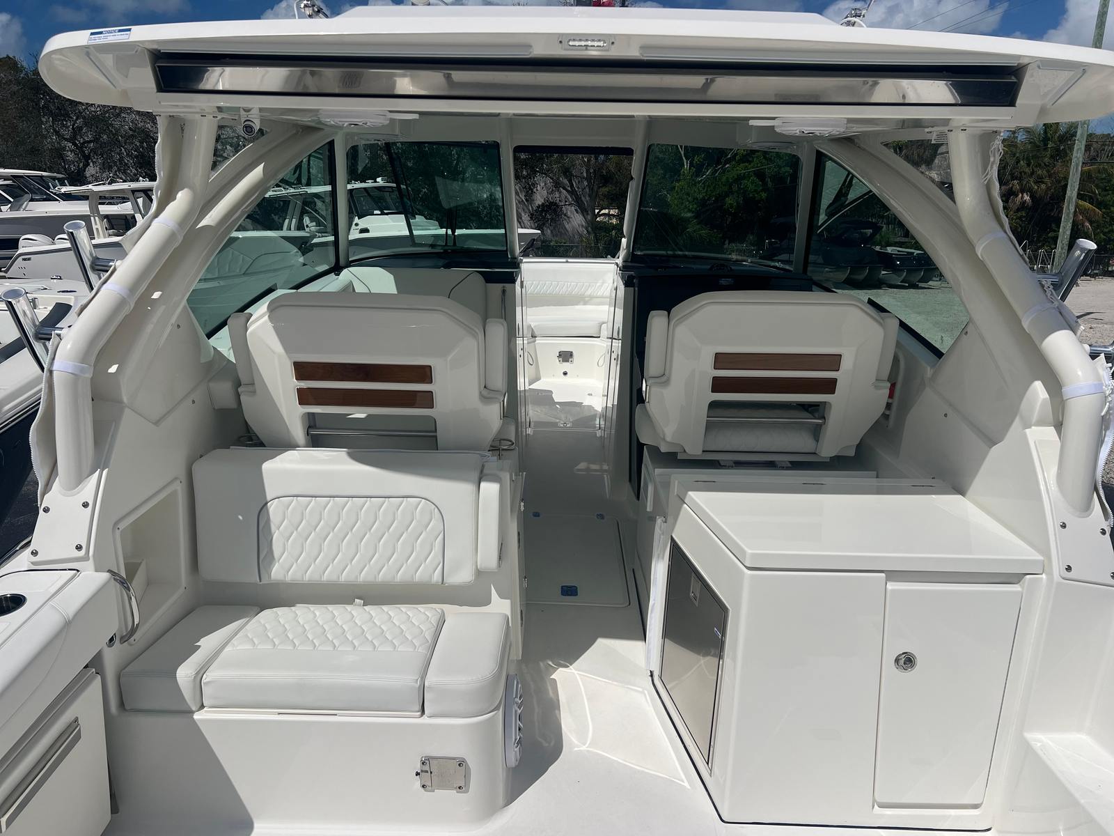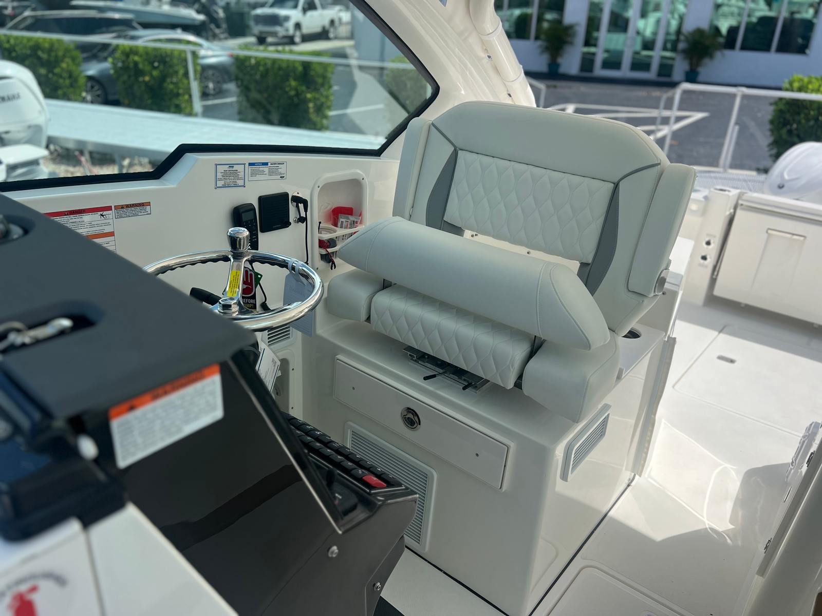 The Pursuit DC 326 is designed with practicality in mind, making ownership both easy and rewarding. The Yamaha Joystick Control simplifies docking and close-quarters handling, reducing stress and enhancing safety. The cooler with chill plate and cockpit grill allow you to prepare and store refreshments for long days on the water. The diesel generator provides dependable power for all your needs, from air conditioning to entertainment systems. With its thoughtful layout and innovative features, this dual console boat for sale offers ample storage for gear and supplies, ensuring you’re always prepared for your next adventure. Fuel efficiency and reliability are built into every aspect of the Pursuit DC 326, so you can focus on making memories rather than worrying about maintenance.