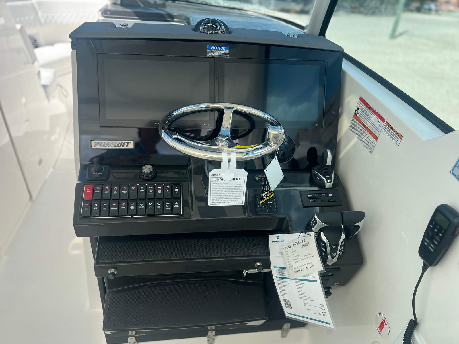 In summary, the Pursuit DC 326 is a premier dual console boat for sale that offers unmatched performance, luxury, and versatility. With twin Yamaha F350 engines, Yamaha Joystick Control, a stunning Carbon hull, Arctic White and Quartz Gray bootstripe, Coastal Sunrise Interior Package, cockpit grill with drip pan, diesel generator, cooler with chill plate, and air conditioning package with reverse cycle, this Pursuit boat for sale is equipped to deliver exceptional experiences on the water. Don’t miss your chance to own this remarkable vessel—contact your dealer today to learn more about the Pursuit DC 326 and discover how it can transform your boating adventures.