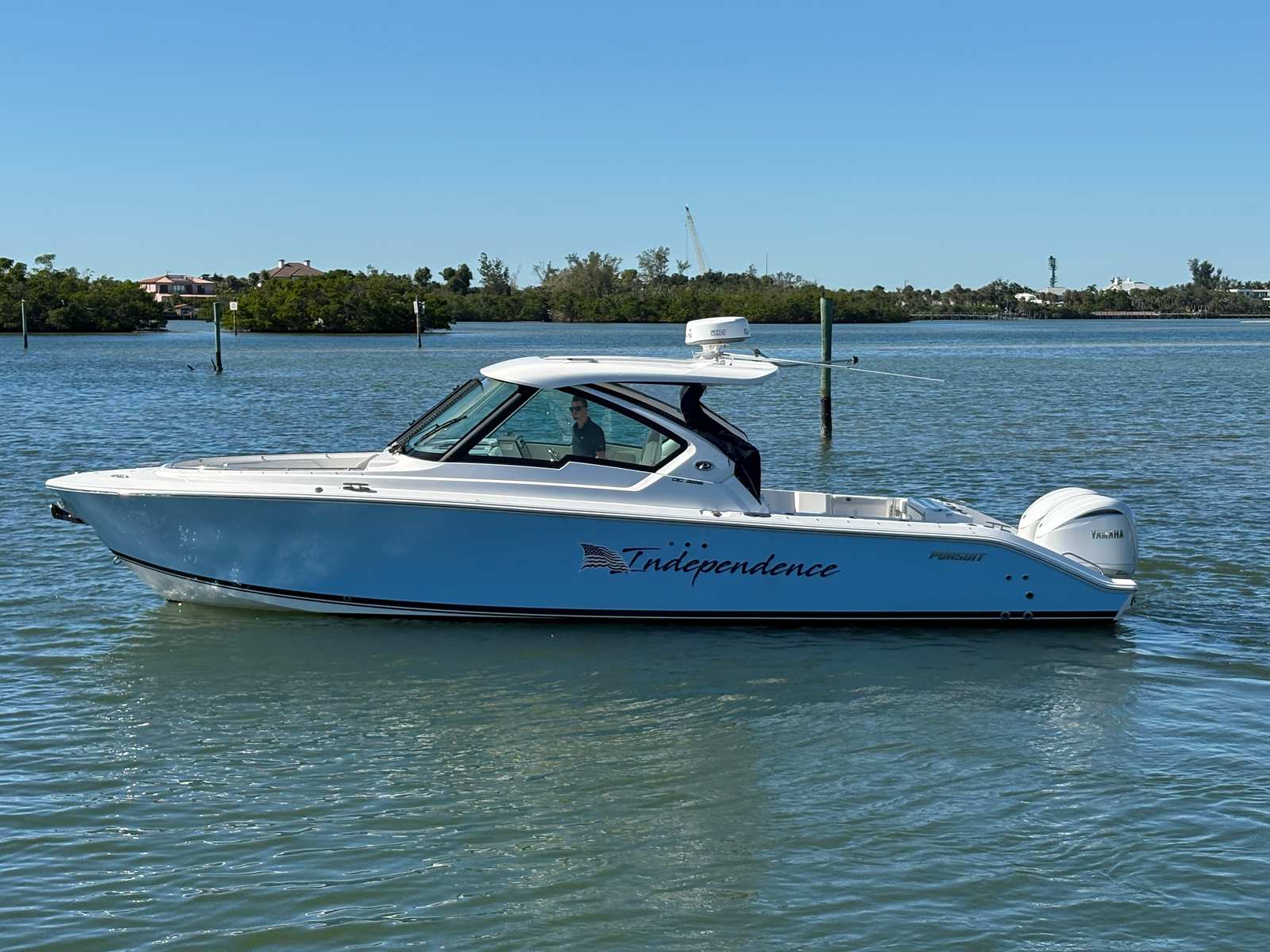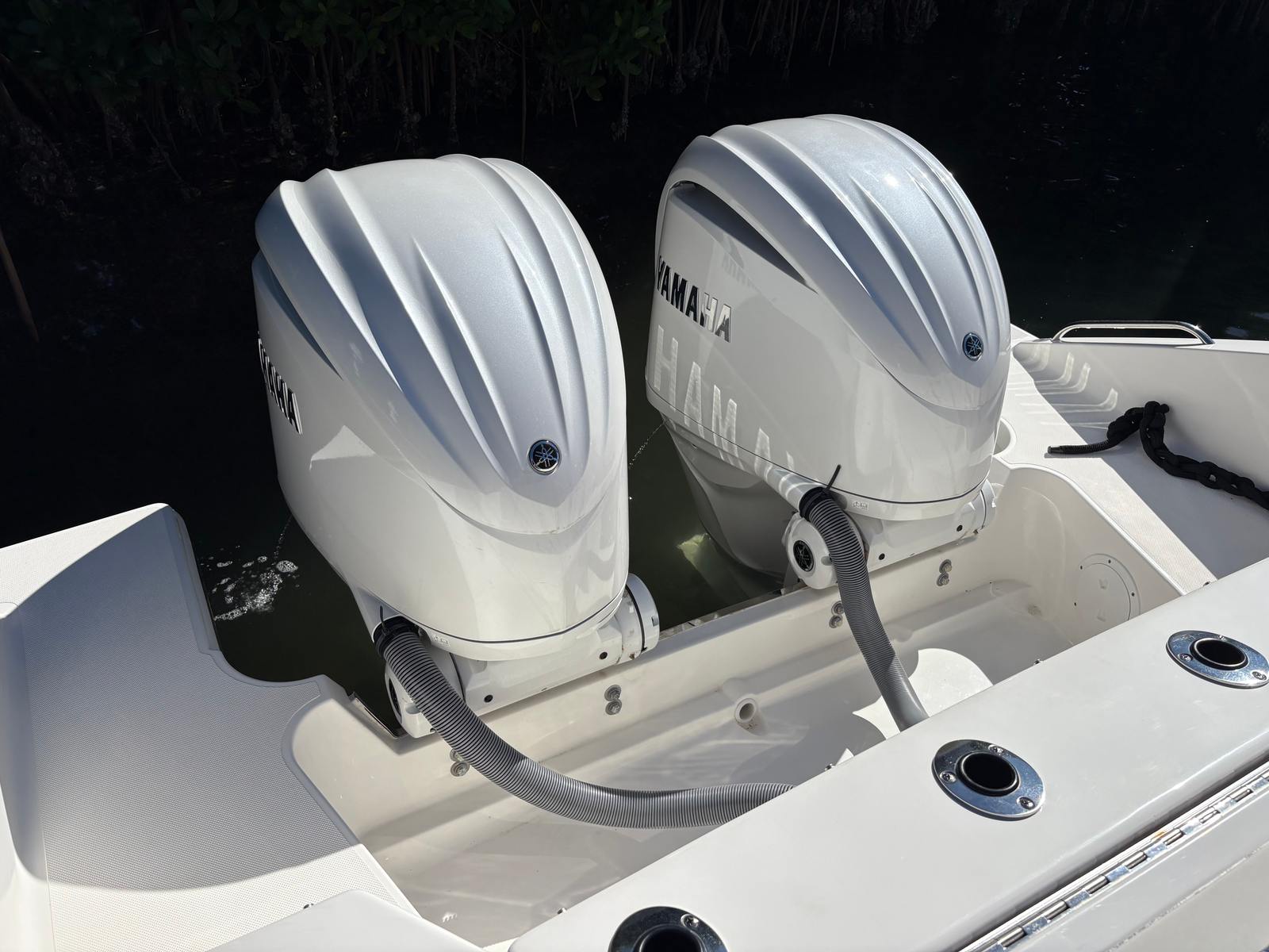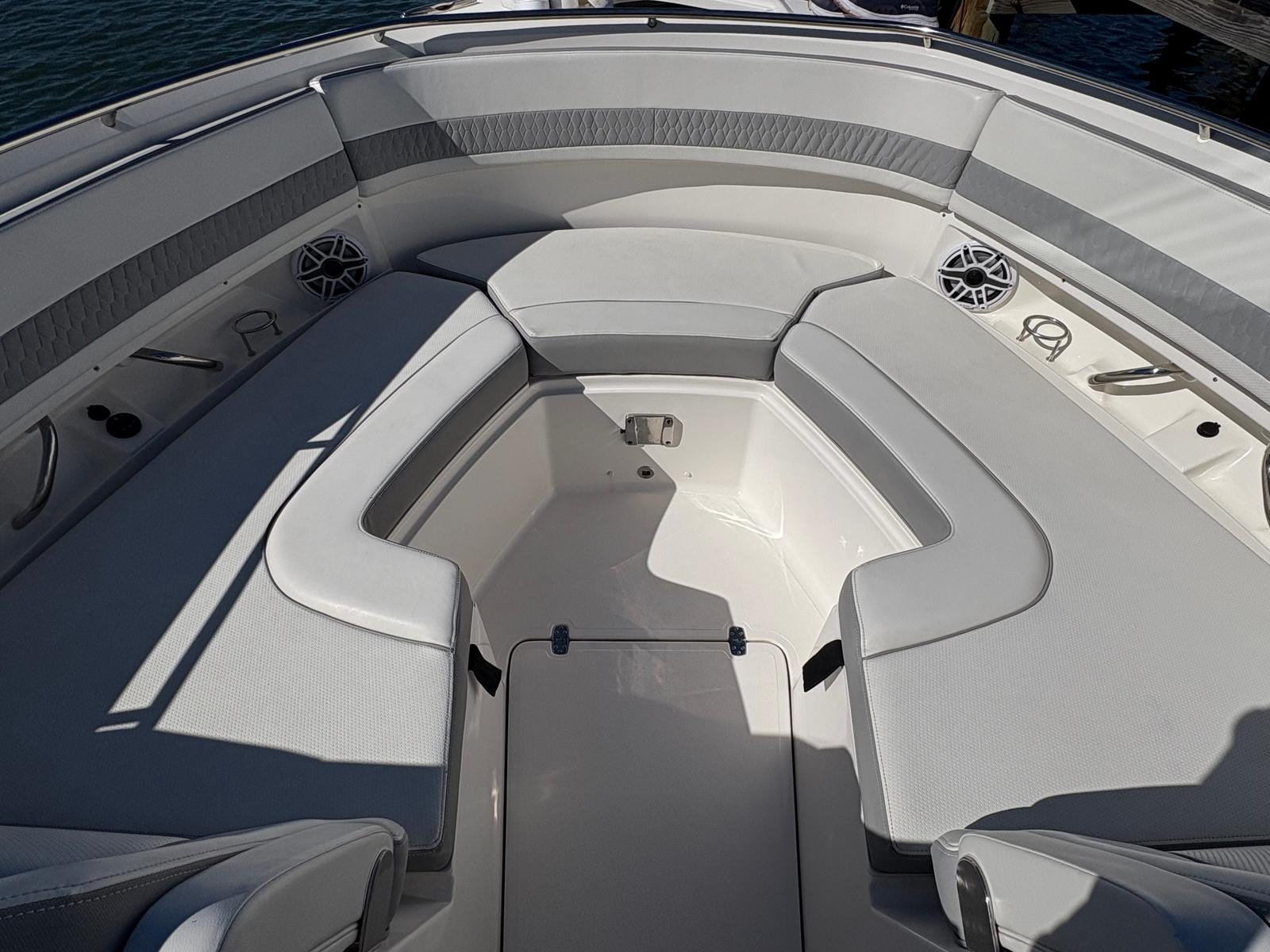 Experience exceptional performance and comfort with this 2023 Pursuit 326 DC, showing just 156 hours and loaded with premium equipment. Powered by twin Yamaha Digital F300 V6 Offshore engines with Yamaha Joystick Control, this versatile dual console delivers confident handling and effortless docking. A bow thruster and autopilot further enhance navigation and control.