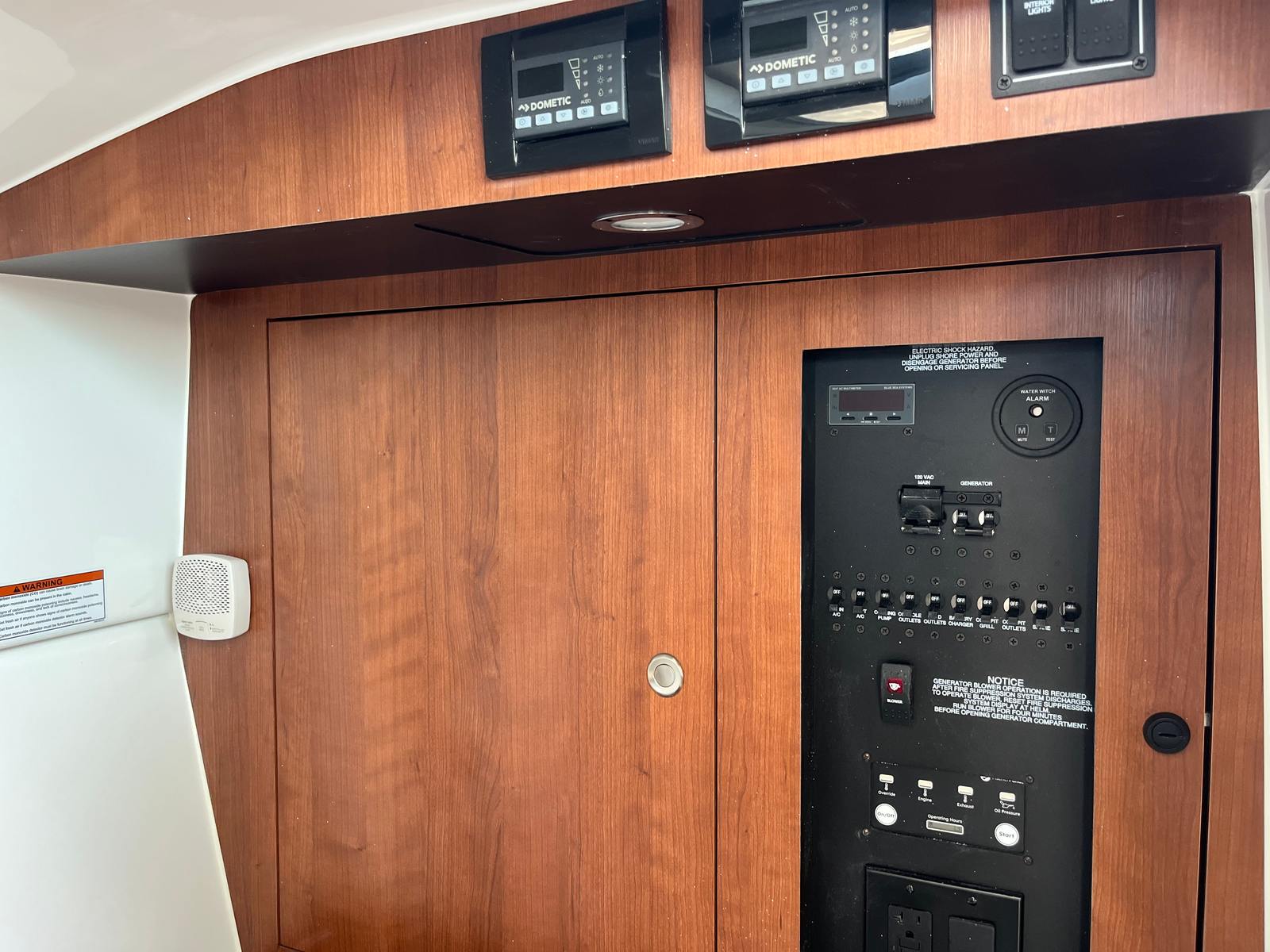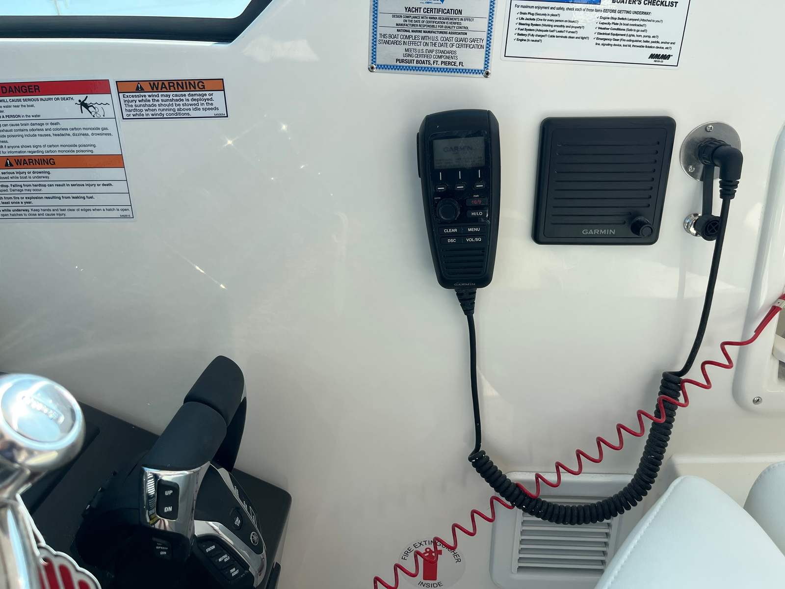 This Pursuit boat for sale is loaded with premium features designed to enhance your time on the water. The air conditioning package with reverse cycle keeps the cabin comfortable in any weather, while the diesel generator provides reliable power for extended trips. Entertain family and friends with the cockpit grill, complete with a drip pan for easy cleanup after preparing your favorite meals. The helm and footrest are finished in a stylish carbon color, adding a touch of sophistication to the command center. Every detail, from the upgraded upholstery to the tranquil sea interior, reflects Pursuit’s commitment to quality and comfort.