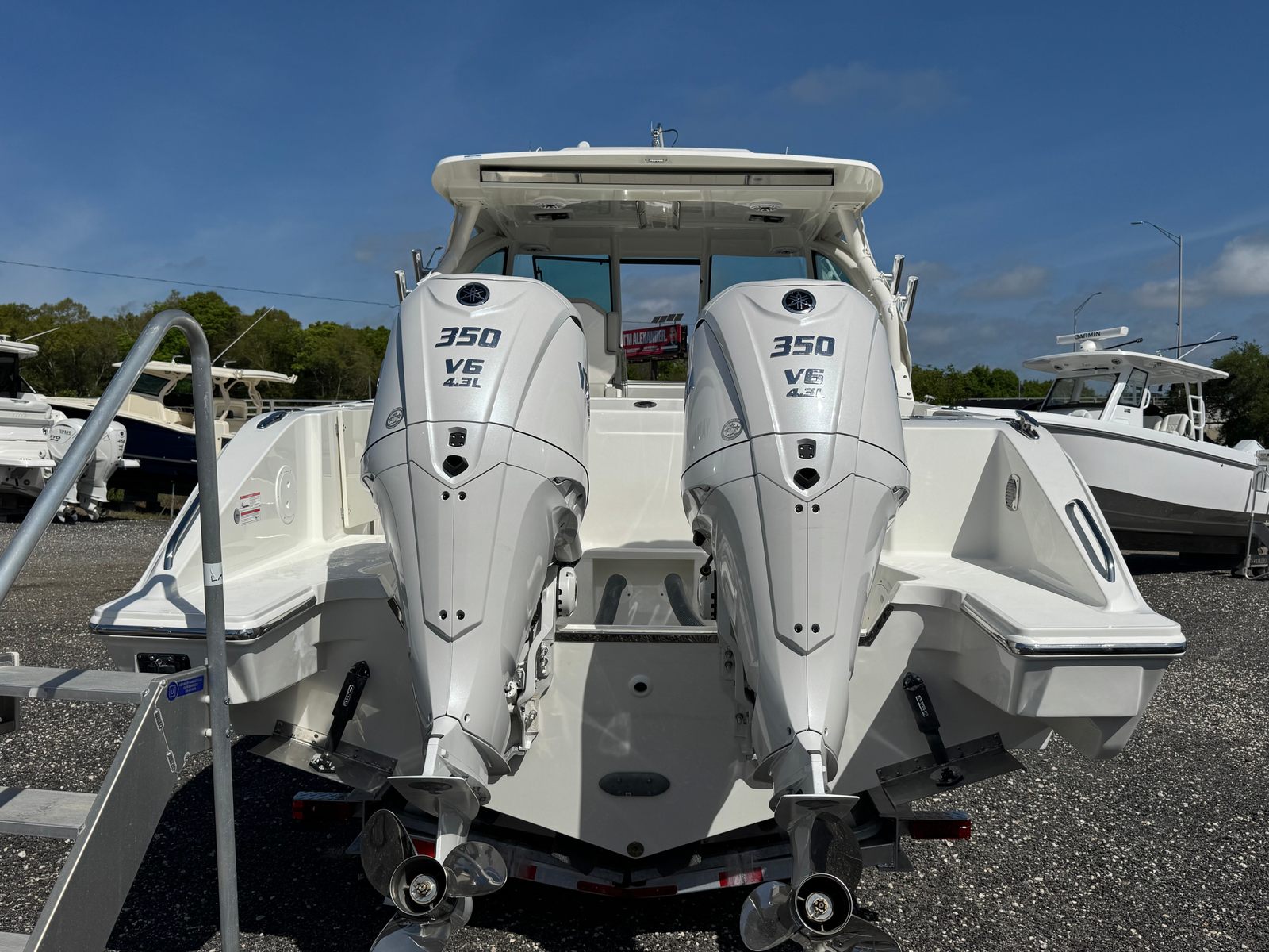 The Pursuit DC 326 is a 34.5-foot dual console boat that exemplifies modern craftsmanship and thoughtful engineering. Built for the 2026 season, this vessel showcases Pursuit’s commitment to quality, comfort, and style. The fresh white hull, accented by a sleek black bootstripe, creates a striking visual impression, while the carbon helm and Coastal Sunrise interior provide a sophisticated and inviting atmosphere. As a brand-new model, the DC 326 offers the latest advancements in marine technology, ensuring you enjoy every moment on the water with confidence and ease.
