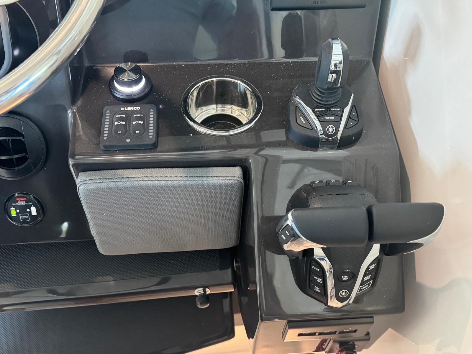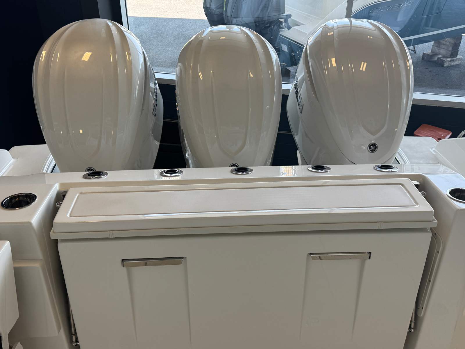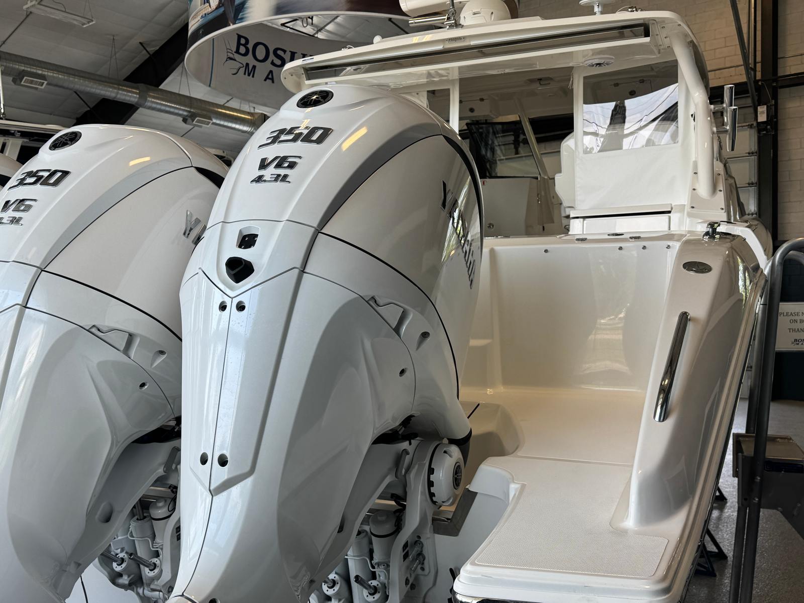 - Triple Yamaha F350 V6 Offshore (Pearlescent White) w/Integrated Digital Electric Steering (DES) and Helm Master EX Digital Electronic Control (DEC), and Yamaha Joystick Contol with Full Maneuverability (Set Point and Autopilot) and Multifunction Display Interface