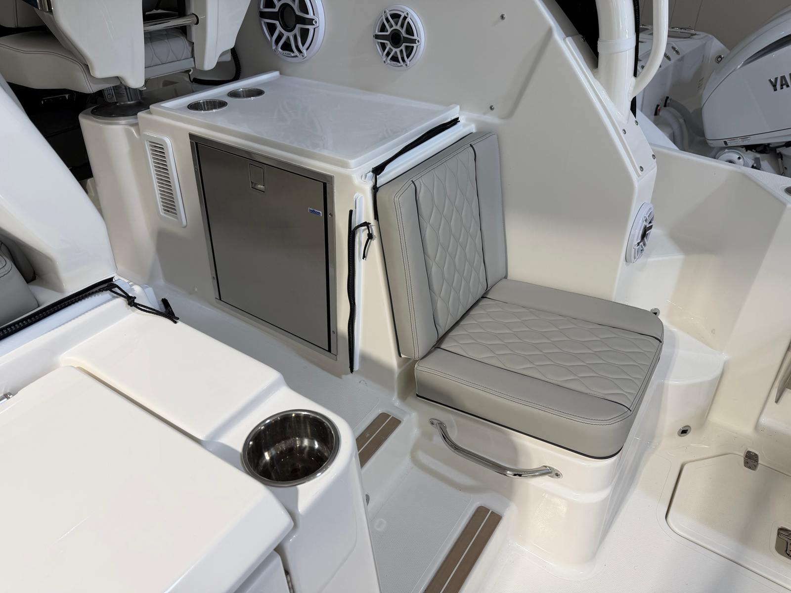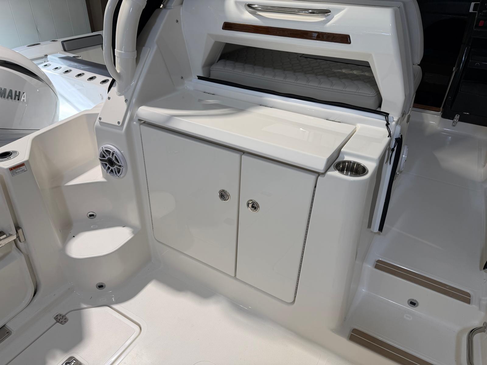 At the heart of the Pursuit OS 325 lies a powerhouse of marine engineering: twin Yamaha Digital F350 V6 Offshore engines in a striking Pearlescent White finish. Delivering a combined 700 horsepower, these engines provide exhilarating acceleration, smooth cruising, and the capability to tackle offshore waters with ease. Integrated Digital Electric Steering (DES) and Helm Master EX Digital Electronic Control (DEC) offer precise handling and effortless control, making navigation intuitive and enjoyable. The Multifunction Display Interface keeps you informed with real-time engine data, while the Manual Engine Flushing System ensures easy maintenance and longevity. Whether you’re cruising along the coastline or heading out for a day of fishing, the OS 325’s performance is both thrilling and dependable.