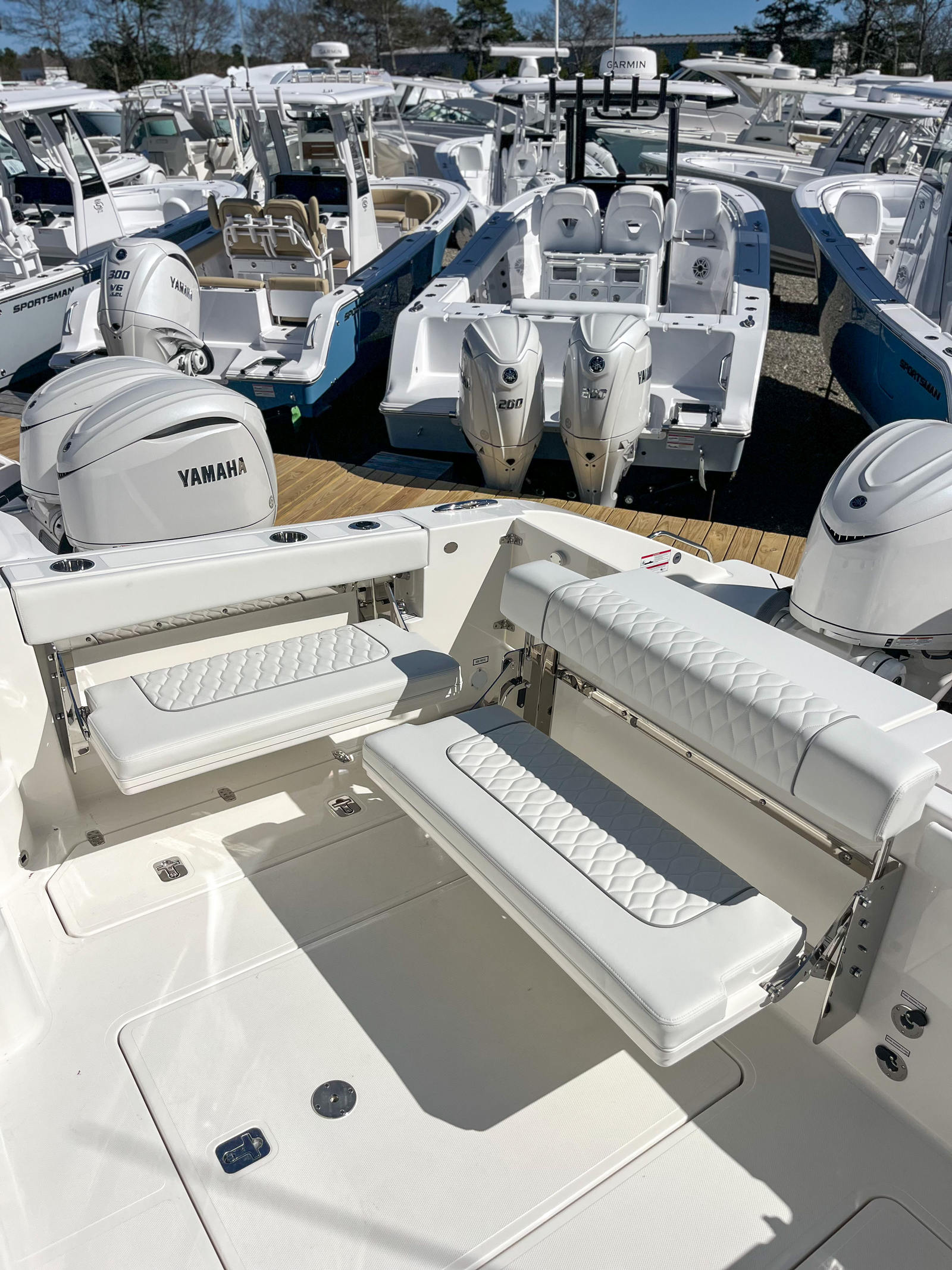 Powering the Pursuit OS 325 are twin Yamaha Digital F350 V6 Offshore engines in Pearlescent White, delivering a combined 700 horsepower. These engines are equipped with Integrated Digital Electric Steering (DES) and Helm Master EX Digital Electronic Control (DEC), ensuring precise handling and effortless control. The advanced Yamaha Joystick Control system provides full maneuverability, including Set Point™ and Autopilot features, making docking and navigation smoother than ever. The Multifunction Display Interface keeps you informed and in command, while the manual engine flushing system helps maintain peak performance and longevity. Whether you’re cruising at high speeds or navigating tight marinas, the OS 325 offers a responsive and exhilarating ride.