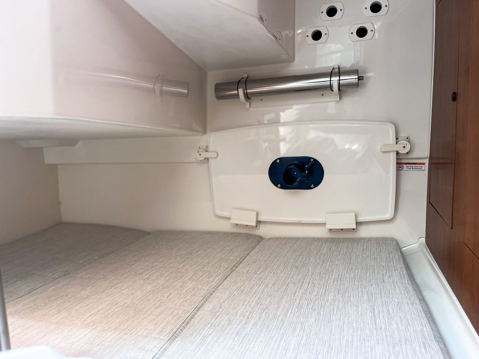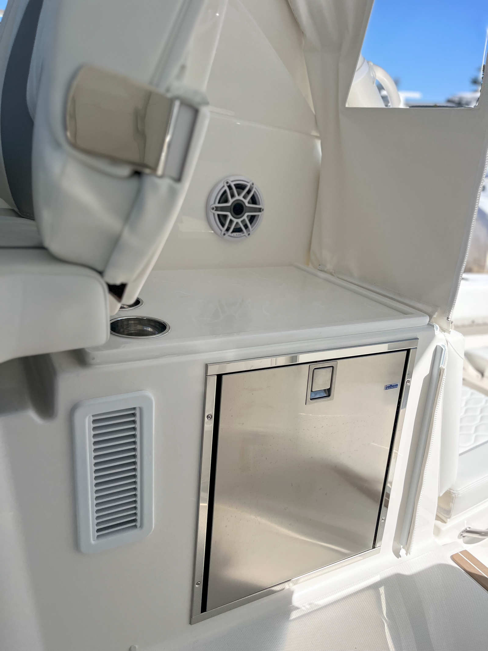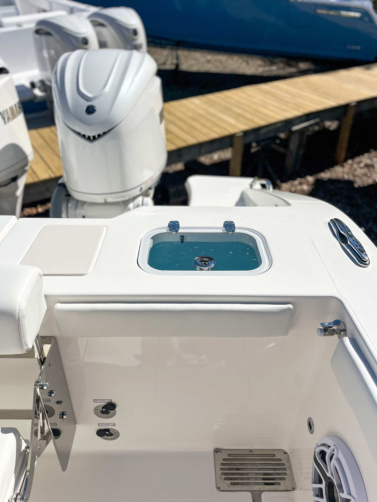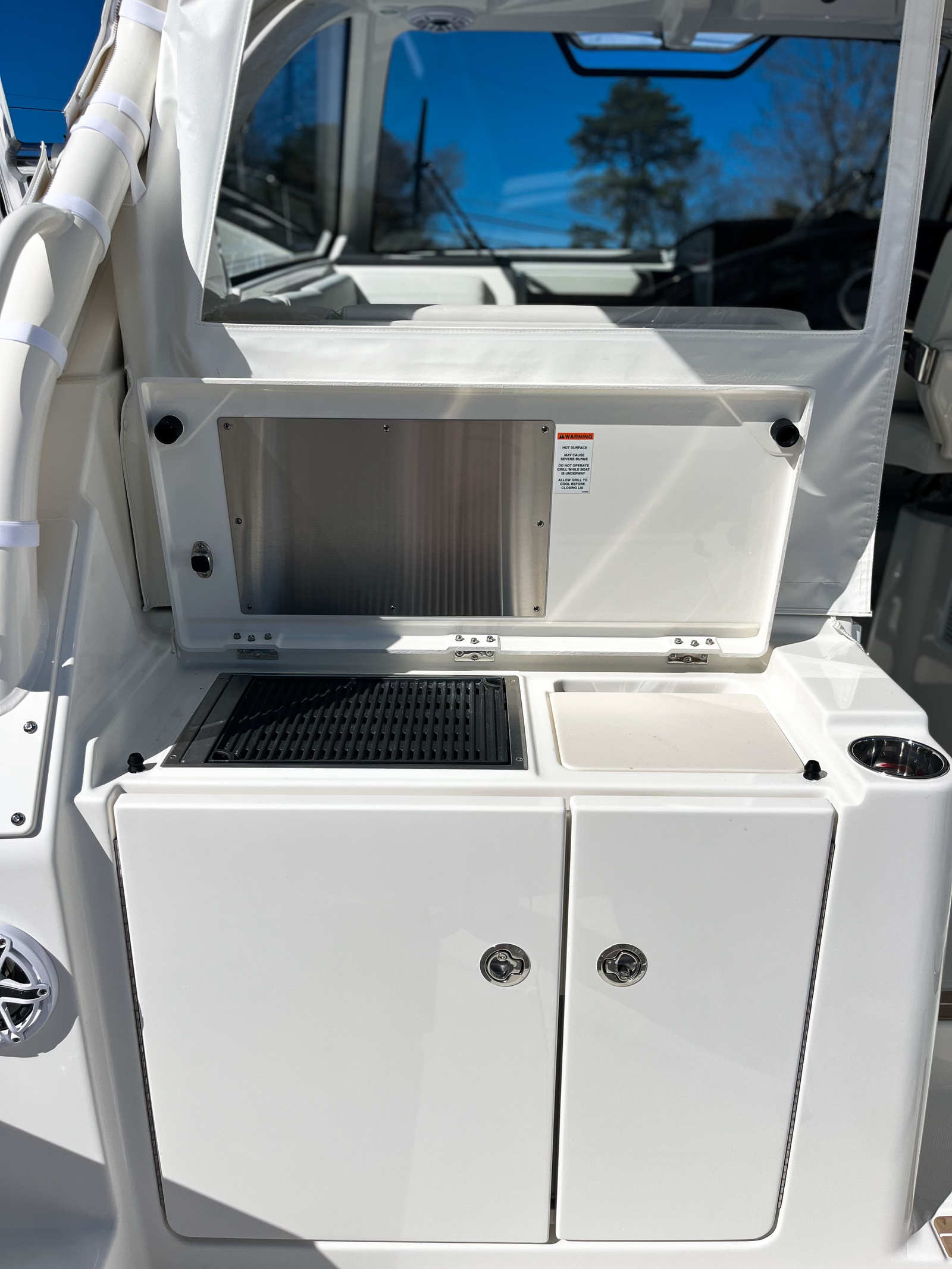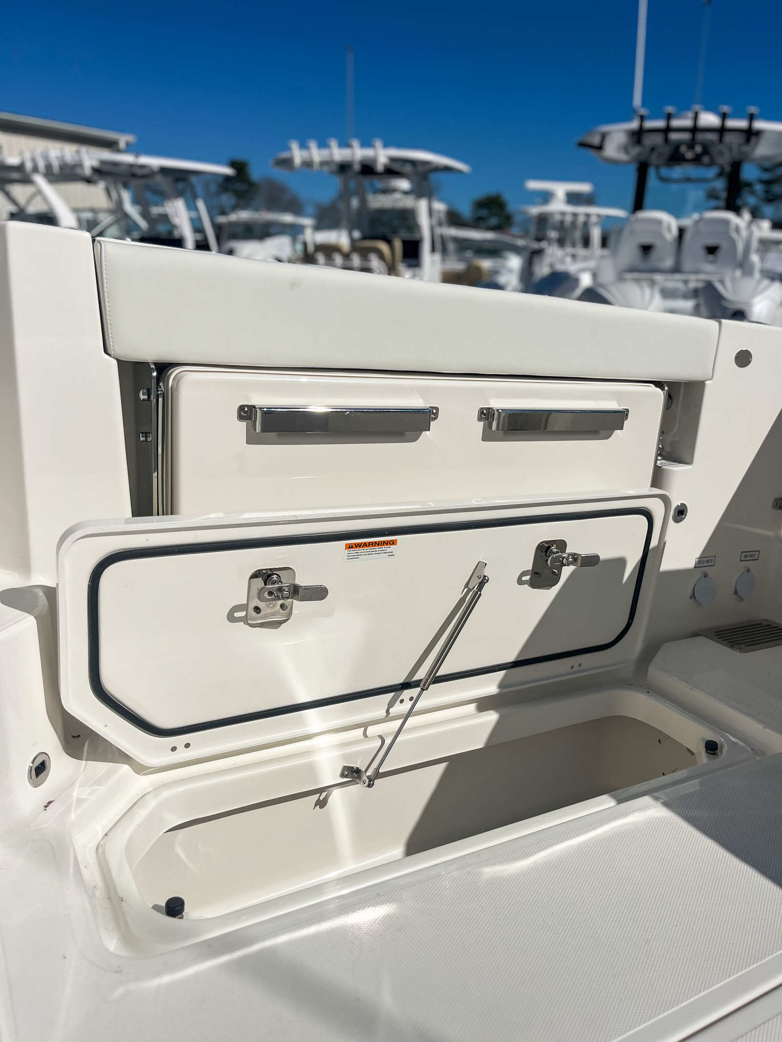 The Pursuit OS 325 is designed with practicality in mind, making ownership easy and enjoyable. The manual engine flushing system simplifies maintenance, helping you keep your engines in top condition with minimal effort. The Multifunction Display Interface provides real-time information and control, enhancing safety and convenience. The boat’s length and hull design make it easy to dock and maneuver, whether you’re in a busy marina or a secluded cove. Ample storage throughout the vessel ensures you have plenty of space for gear, supplies, and personal items, so you’re always prepared for your next adventure. Fuel efficiency is optimized through advanced engine technology, allowing you to spend more time on the water and less at the pump.