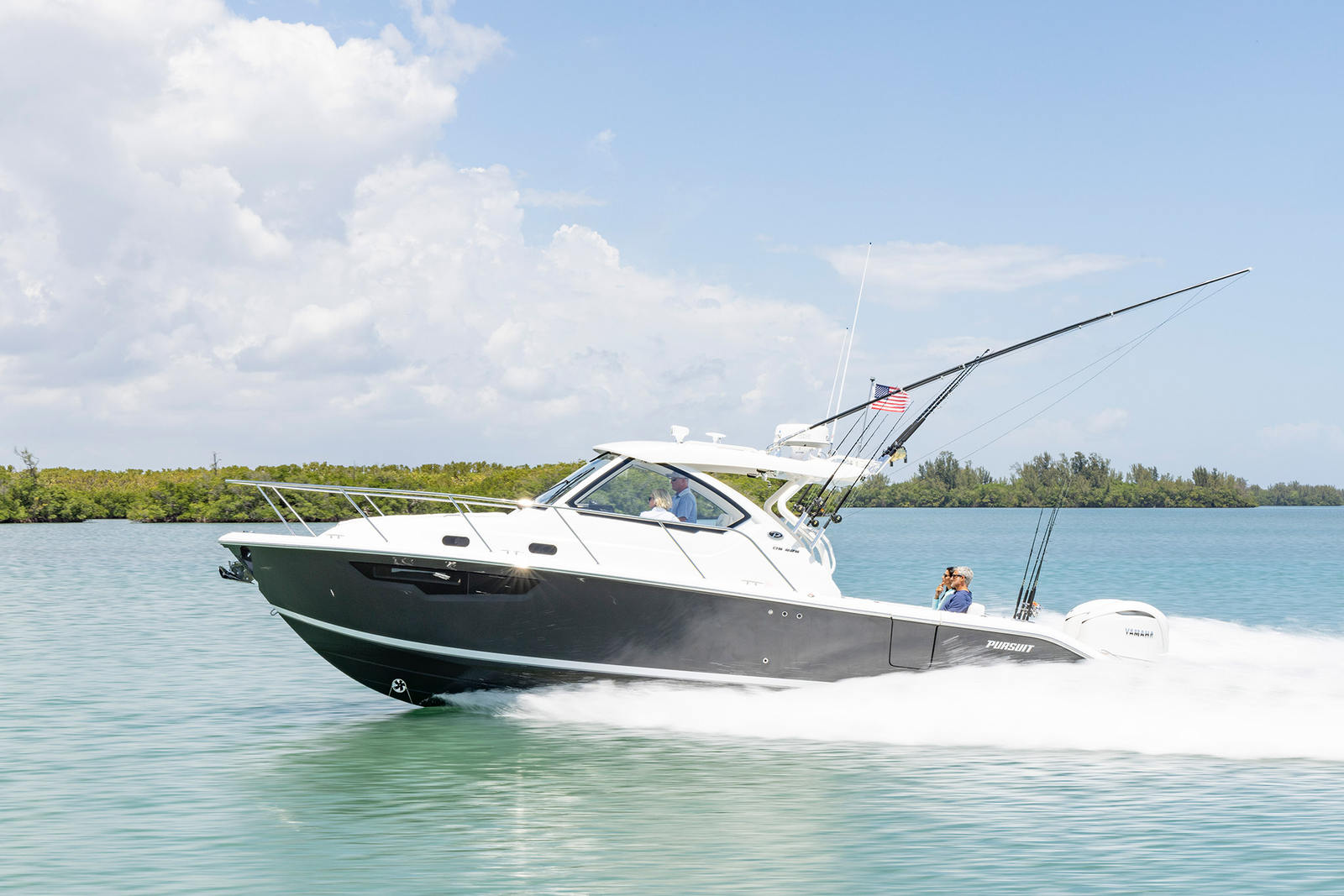 The Pursuit OS 325 shines in a variety of scenarios, making it a versatile choice for any boating enthusiast. Imagine hosting a sunset dinner on the bridgedeck teak table, cooled by the gentle breeze and the comfort of air conditioning. Take your family on a weekend escape, enjoying the spacious cabin and sunshade as you explore new destinations. For fishing enthusiasts, the OS 325 offers the power and maneuverability needed to reach prime spots with ease. If luxury getaways are your style, the elegant interior and advanced features create a five-star experience on the water. Whether you’re seeking adventure, relaxation, or a bit of both, this cruiser boat for sale adapts to your needs and exceeds expectations.