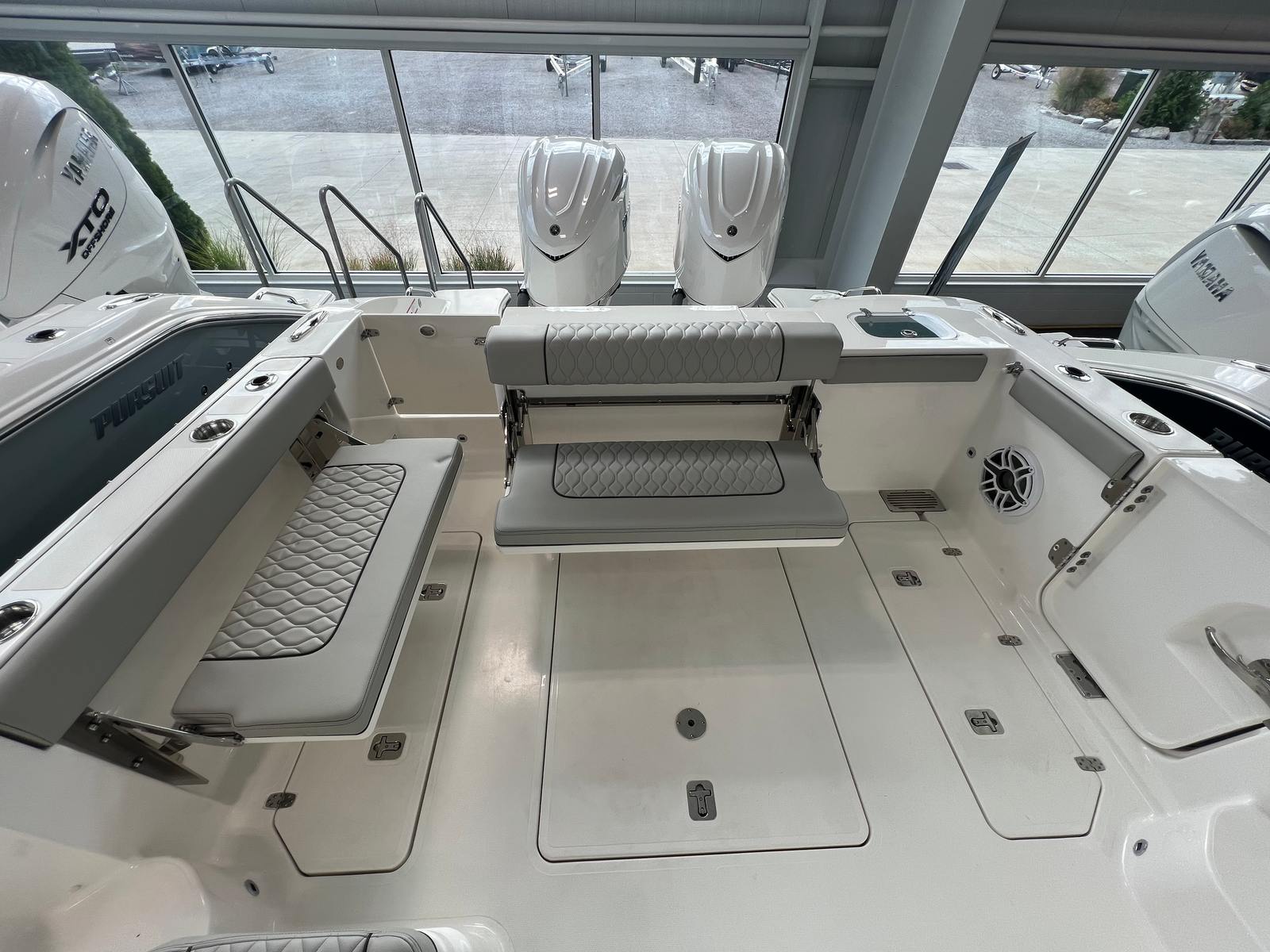 Power and precision define the performance of the Pursuit 325 OS. Equipped with twin engines delivering a combined 700 horsepower, this cruiser is built to impress. The dual-engine setup provides exceptional acceleration, responsive handling, and the confidence to tackle a variety of water conditions. Whether you are cruising along the coastline, exploring hidden coves, or heading offshore for a day of adventure, the Pursuit 325 OS offers the power and reliability you need for a thrilling and safe boating experience. The advanced engineering behind this Pursuit boat for sale ensures optimal fuel efficiency and smooth operation, so you can focus on making the most of your time on the water.