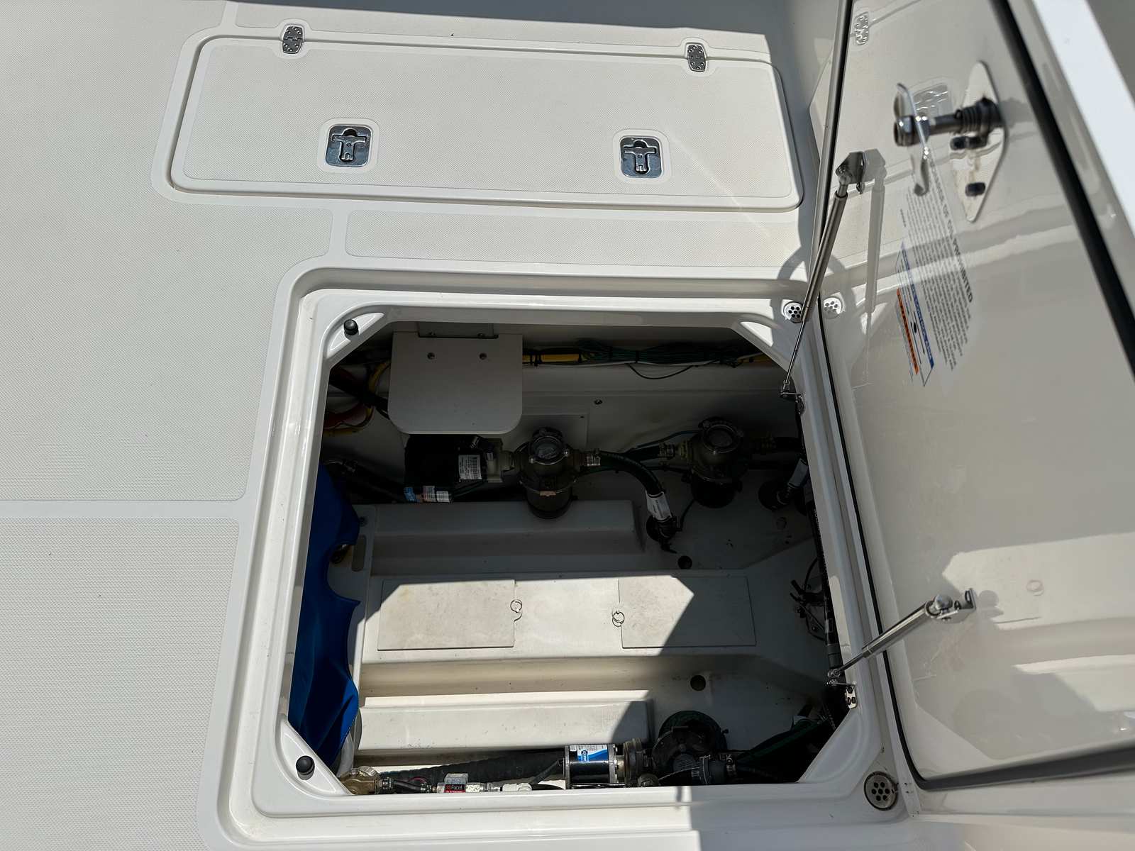 Power and precision define the performance of the Pursuit 355 OS. Equipped with three robust engines delivering a combined 900 horsepower, this cruiser is engineered for exhilarating speed and smooth handling. The triple-engine setup ensures reliable power, whether you are cruising at a leisurely pace or accelerating to reach your favorite destinations quickly. With 350 engine hours, these engines have been well-maintained and are primed for many more seasons of enjoyment. The Pursuit 355 OS offers a responsive ride, making it easy to navigate through various water conditions while providing the confidence and control that experienced boaters appreciate.