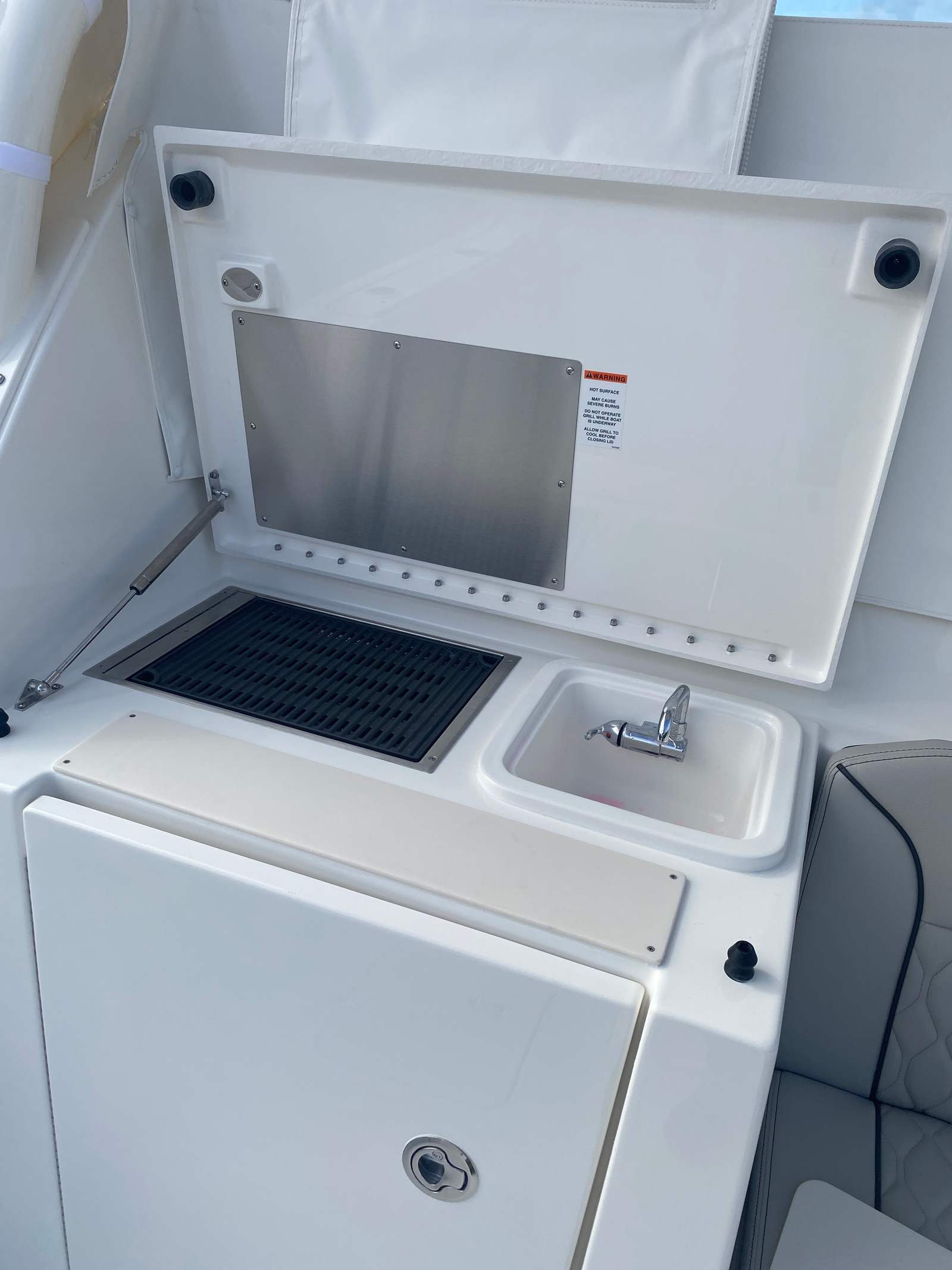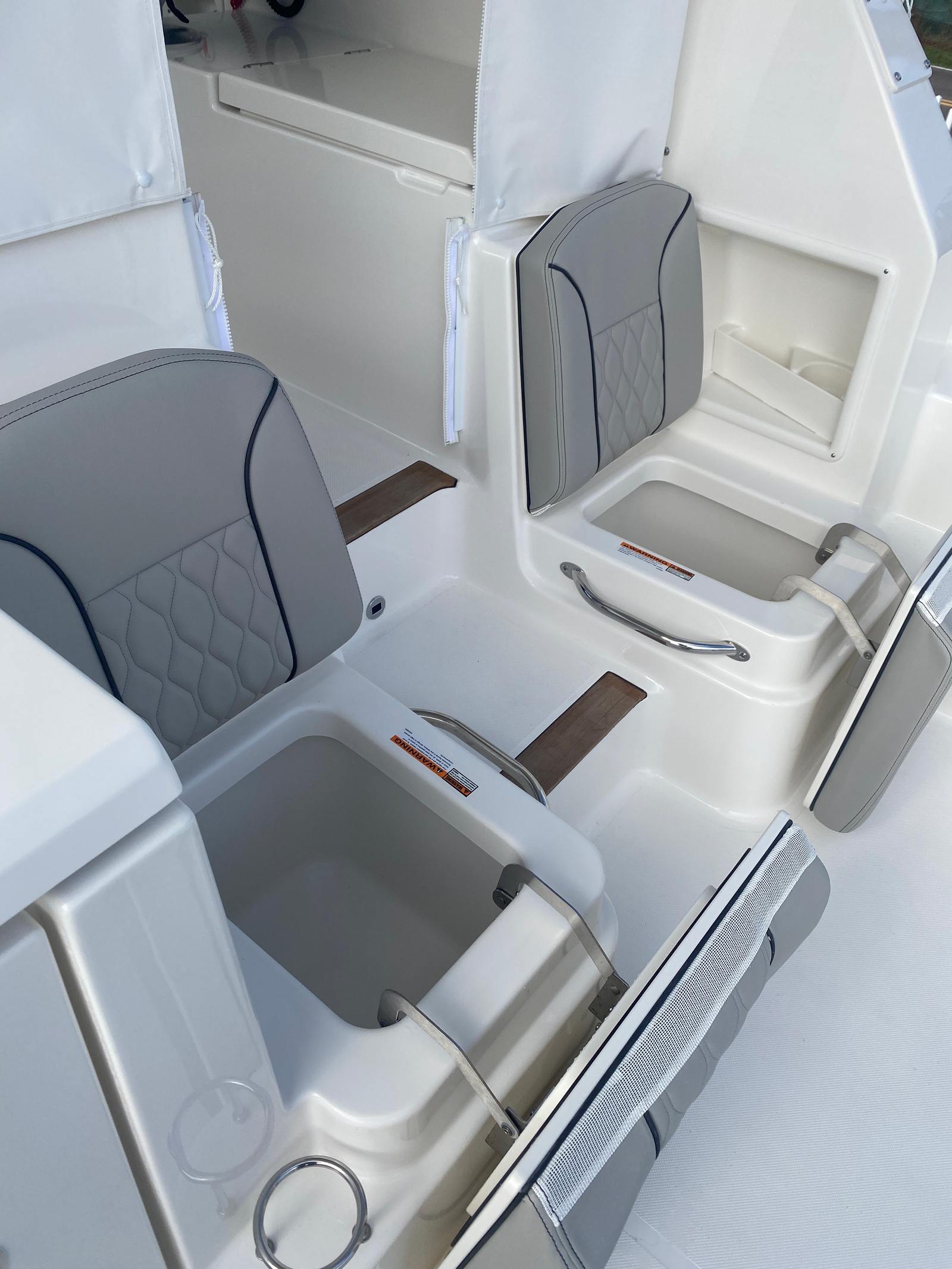 Owning the Pursuit OS 355 Cruiser means embracing a lifestyle of luxury, comfort, and adventure. The spacious layout and premium finishes create an inviting environment for relaxation and socializing, whether you’re hosting a sunset cocktail party or enjoying a quiet morning on the water. The advanced climate control system ensures year-round comfort, while the retractable sunshade lets you tailor your outdoor experience to suit your preferences. With dedicated storage for tables and other amenities, you’ll appreciate the organized and clutter-free living spaces that make every outing enjoyable.The triple Yamaha engines provide not only impressive speed but also the confidence to explore farther and faster. Whether you’re cruising along the coast or heading out for a weekend getaway, the OS 355’s performance capabilities open up a world of possibilities. The integrated spotlight enhances safety, allowing you to navigate with ease after dark and ensuring your adventures are never limited by daylight hours.