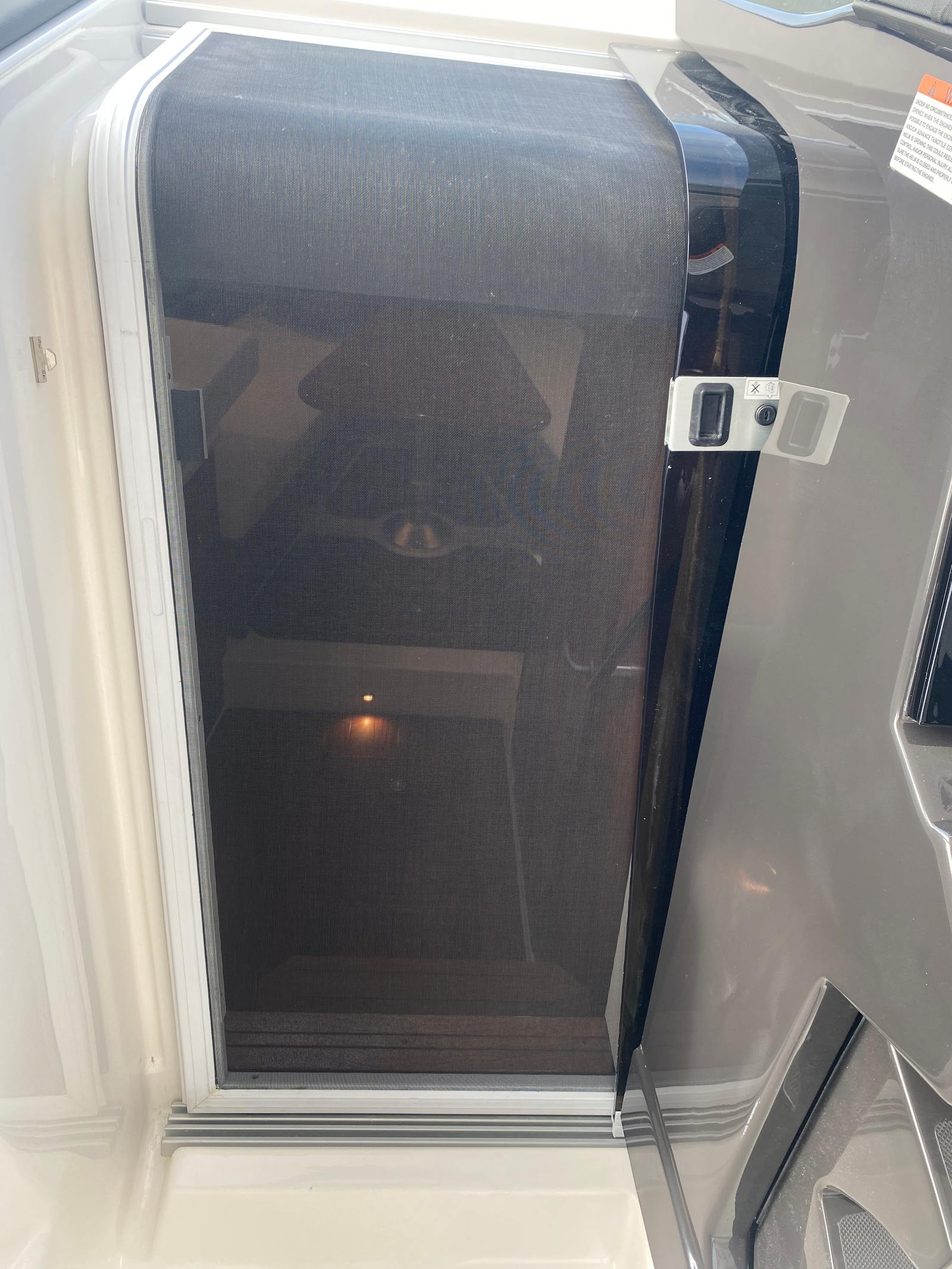 The Pursuit OS 355 Cruiser is designed with practicality in mind, making ownership effortless and enjoyable. The nearly 38-foot length offers generous storage options for gear, supplies, and personal items, keeping your living spaces tidy and functional. The dedicated storage for both the Bridgedeck Teak Table and the fiberglass cockpit table ensures these amenities are always within reach yet out of the way when not in use.Docking and maneuvering are simplified by the boat’s advanced design and powerful engines, allowing for smooth handling in tight spaces and busy marinas. The efficient triple Yamaha engines contribute to better fuel management, so you can spend more time on the water and less time refueling. The integrated climate control system means you can enjoy your cruiser in any season, while the retractable sunshade offers protection from the elements with the touch of a button.