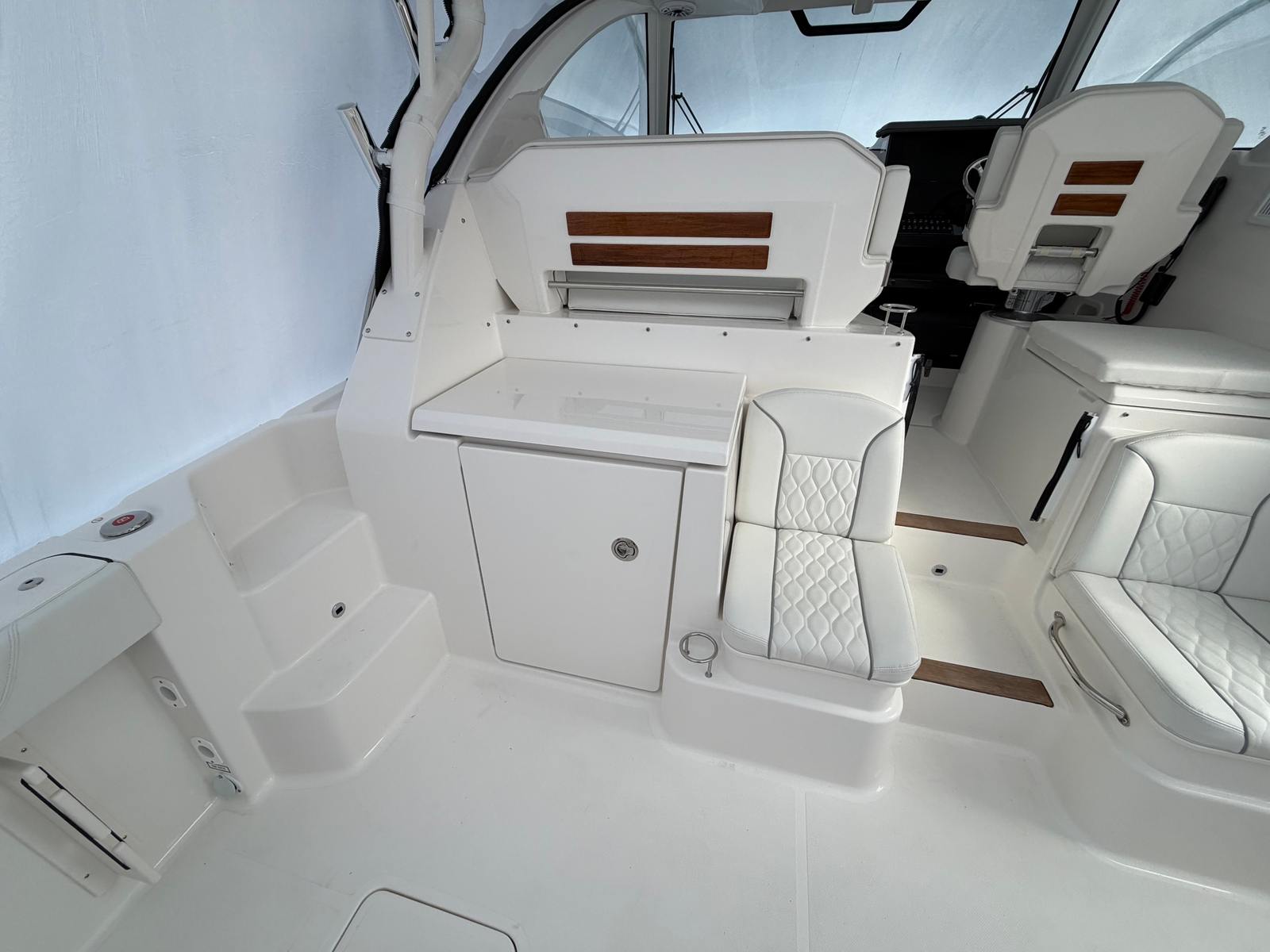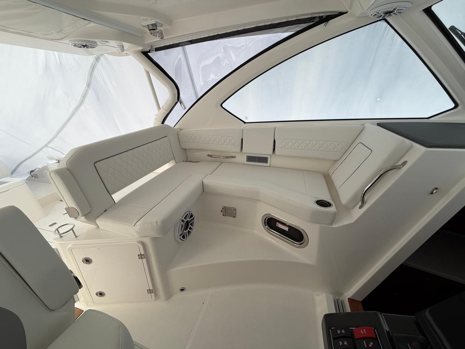 Owning the Pursuit OS 355 Cruiser means embracing a lifestyle of fun, relaxation, and adventure. The spacious layout is ideal for hosting friends and family, with plenty of room to move around, dine, or simply enjoy the view. The advanced air conditioning system keeps everyone comfortable, while the luxurious interior and upholstery ensure every trip feels like a getaway. The underwater lights add a magical touch to evening gatherings, creating a unique ambiance that sets your boat apart.The triple-engine configuration not only delivers outstanding performance but also provides peace of mind with reliable power and smooth operation. Whether you’re seeking high-speed thrills or leisurely cruises, the Pursuit OS 355 adapts to your preferences, making it one of the most versatile cruiser boats for sale on the market.